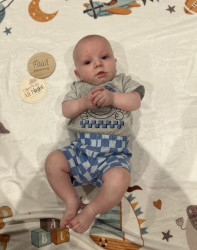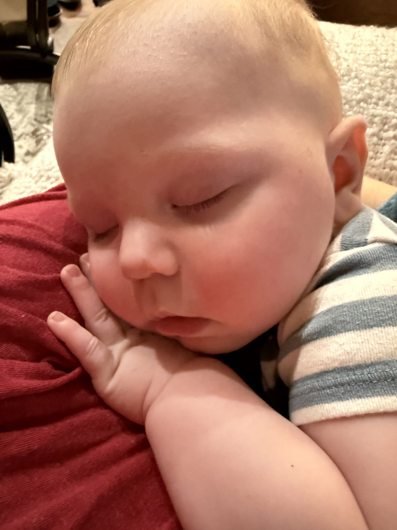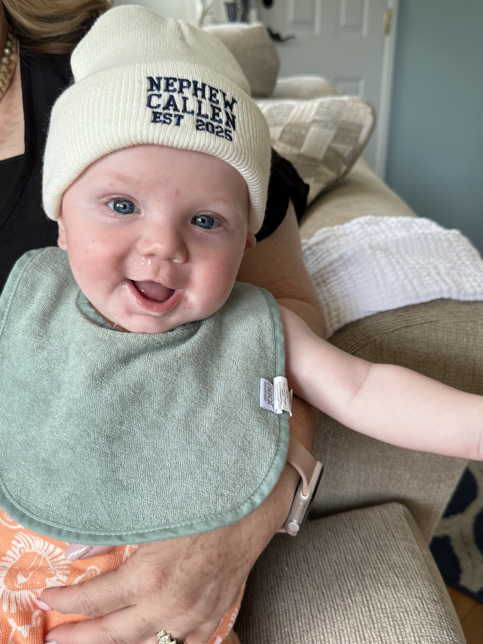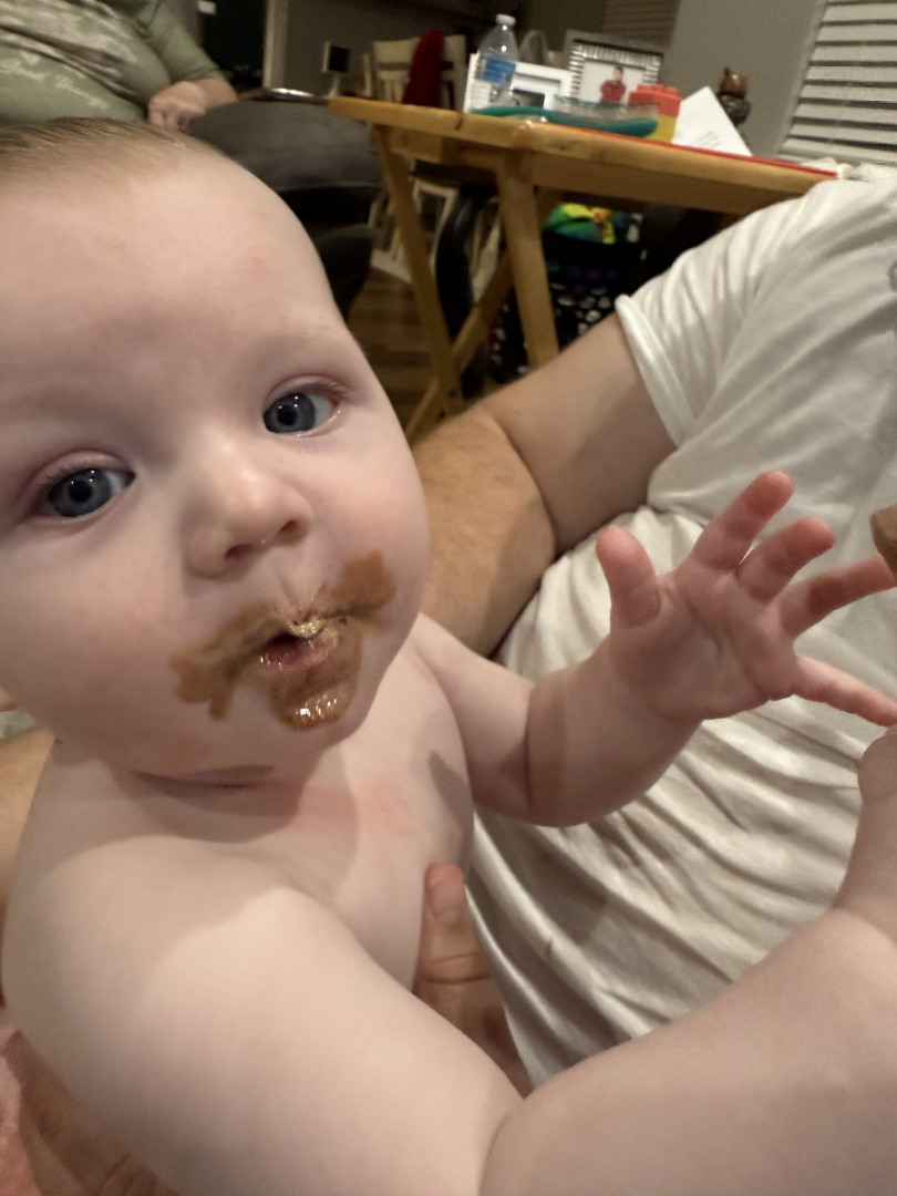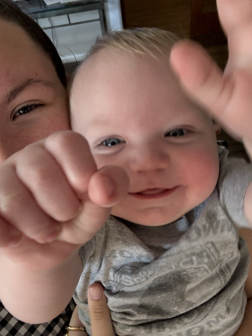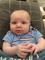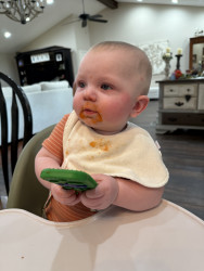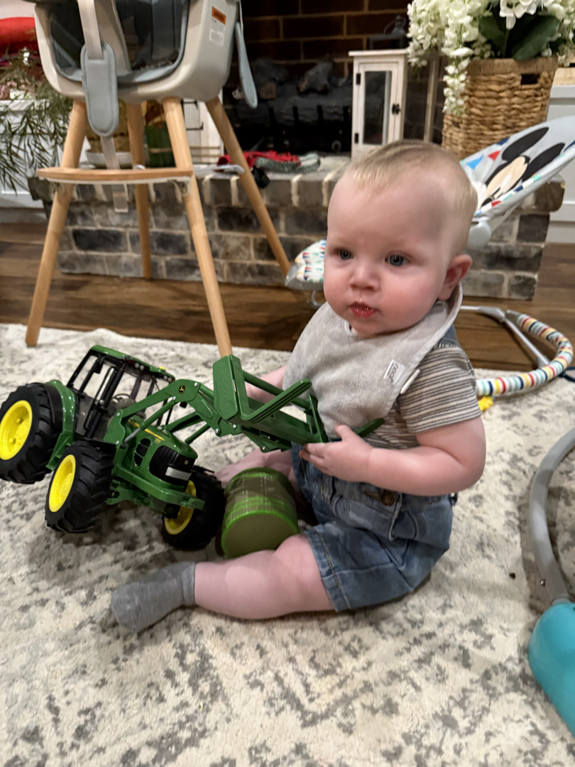 He is the sweetest baby you will ever meet. He is super social and loves to smile. He almost never needs a pacifier because he is just a happy boy.