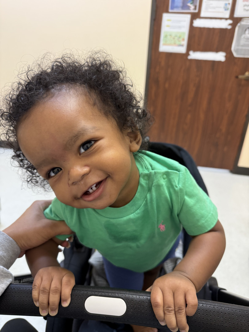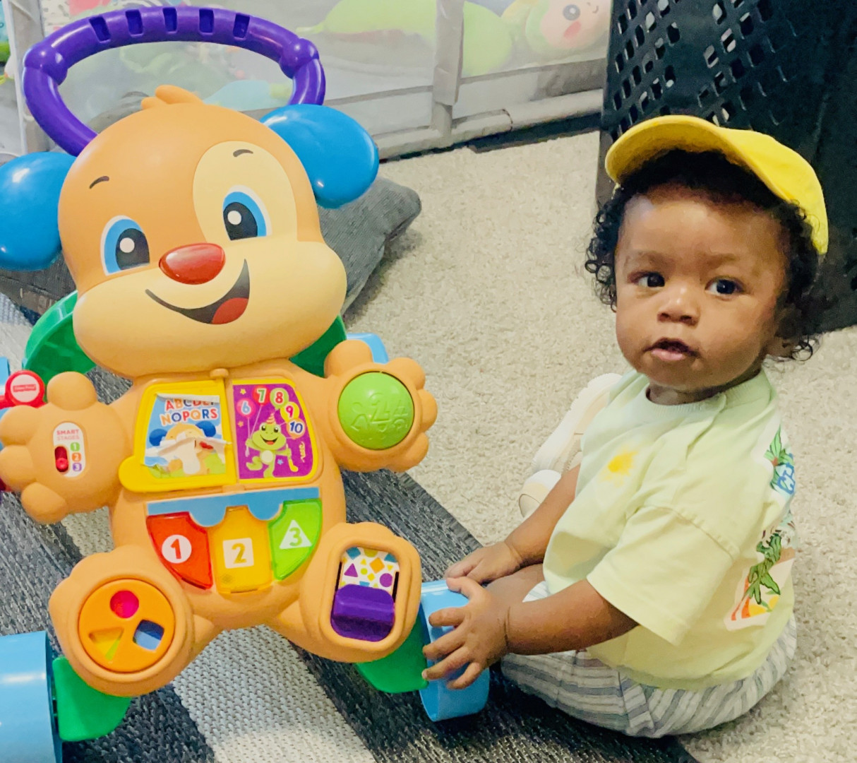 What are Cameron's favorite activities?At 8 months, Cameron is full of energy and curiosity! He loves standing tall and playing with his toys, especially anything with wheels that he can roll around. Being outside is one of his favorite things—fresh air, sunshine, and new sights always make him light up. He’s also a little social butterfly, smiling big when he meets and sees new faces