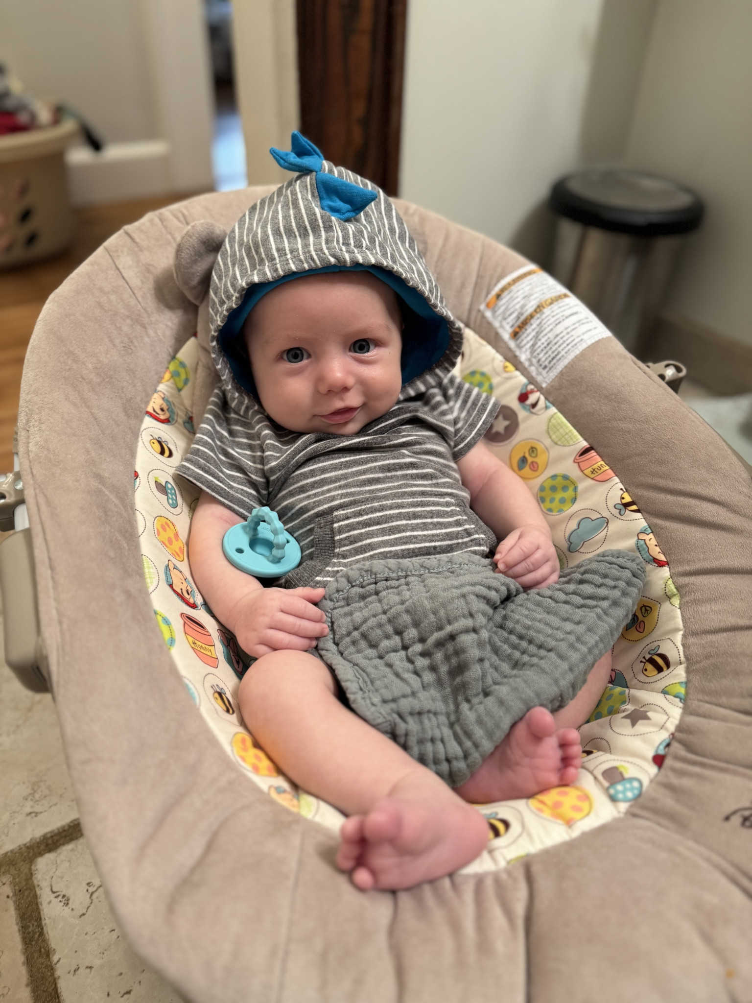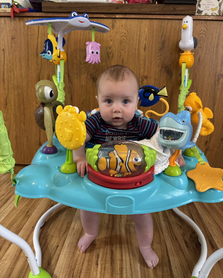 What are Canyon's favorite activities?He loves being tickled, playing peekaboo, listening to music and playing in his activity bouncer. Books are becoming a favorite as he’s more aware of the bedtime routine. He also loves to eat- we haven’t found anything yet that he doesn’t like!