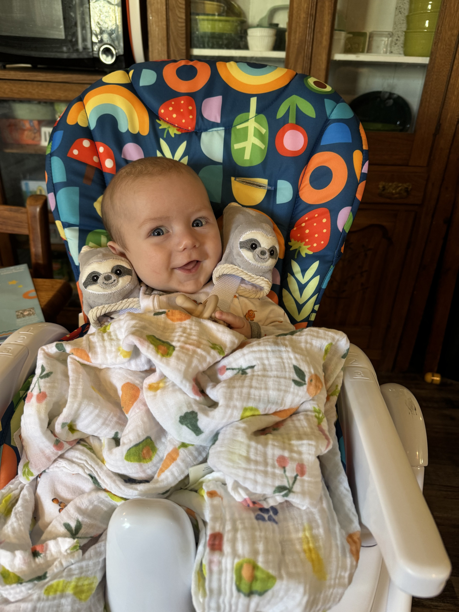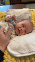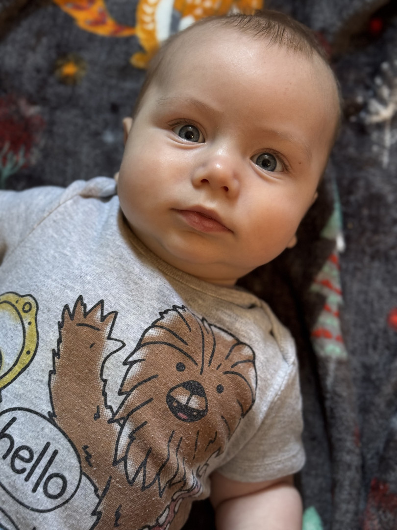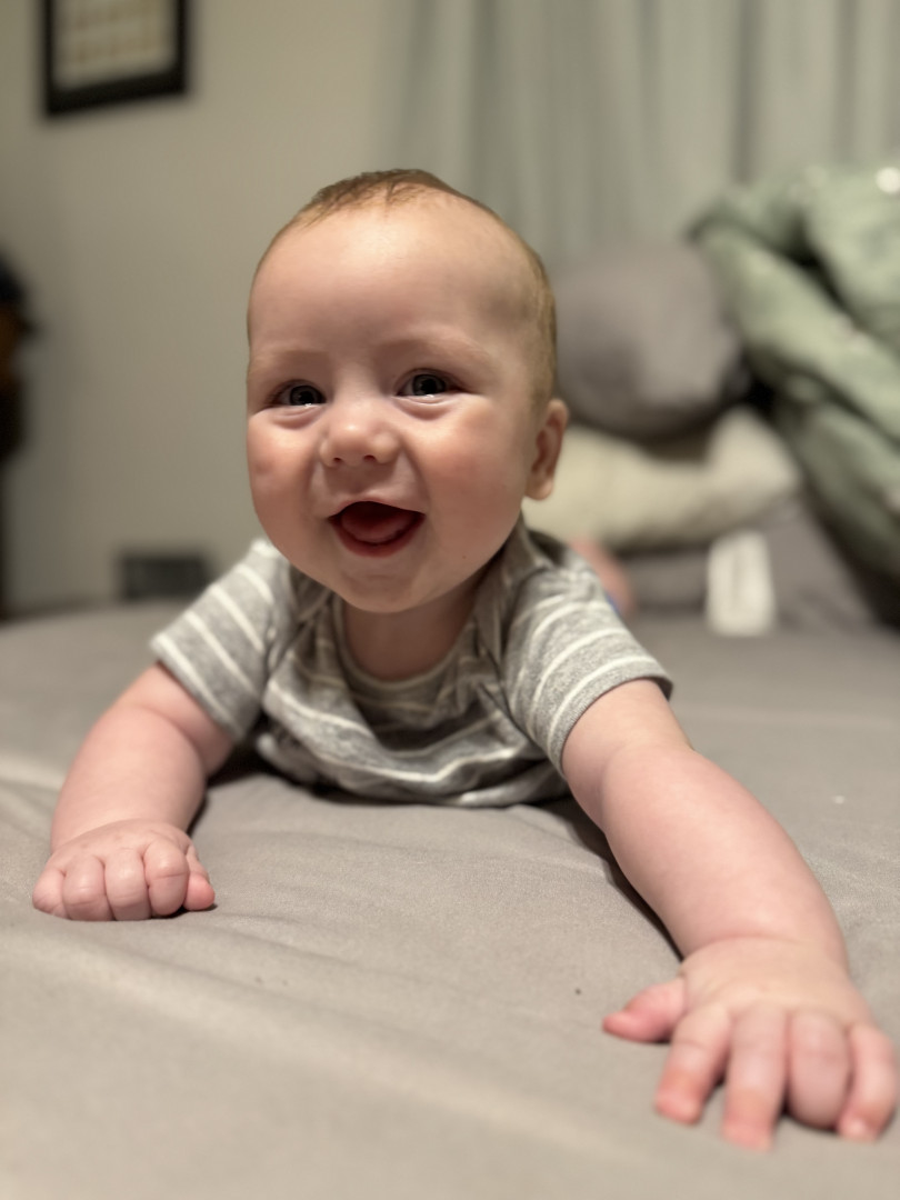 Canyon is so happy and snuggly! As soon as he sees one of us, he just lights up and starts kicking and making noise. He just loves to babble and giggle! The only time he’s really upset is when he’s hungry or when he feels like no one’s paying attention to him. Lately, he just wants to be on the go- he is constantly crawling around, trying to chase his older siblings.