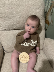 Even at just six months old, my little boy's personality shines through. He's incredibly active and always on the move, full of curiosity and energy. He’s sweet-natured and lights up the room with his big smiles and contagious laughter. He's also a little chatterbox — always babbling and trying to ‘talk,’ especially when he’s excited. You can already tell how smart and observant he is, always watching the world around him and responding with such awareness. He’s joyful, social, and full of life