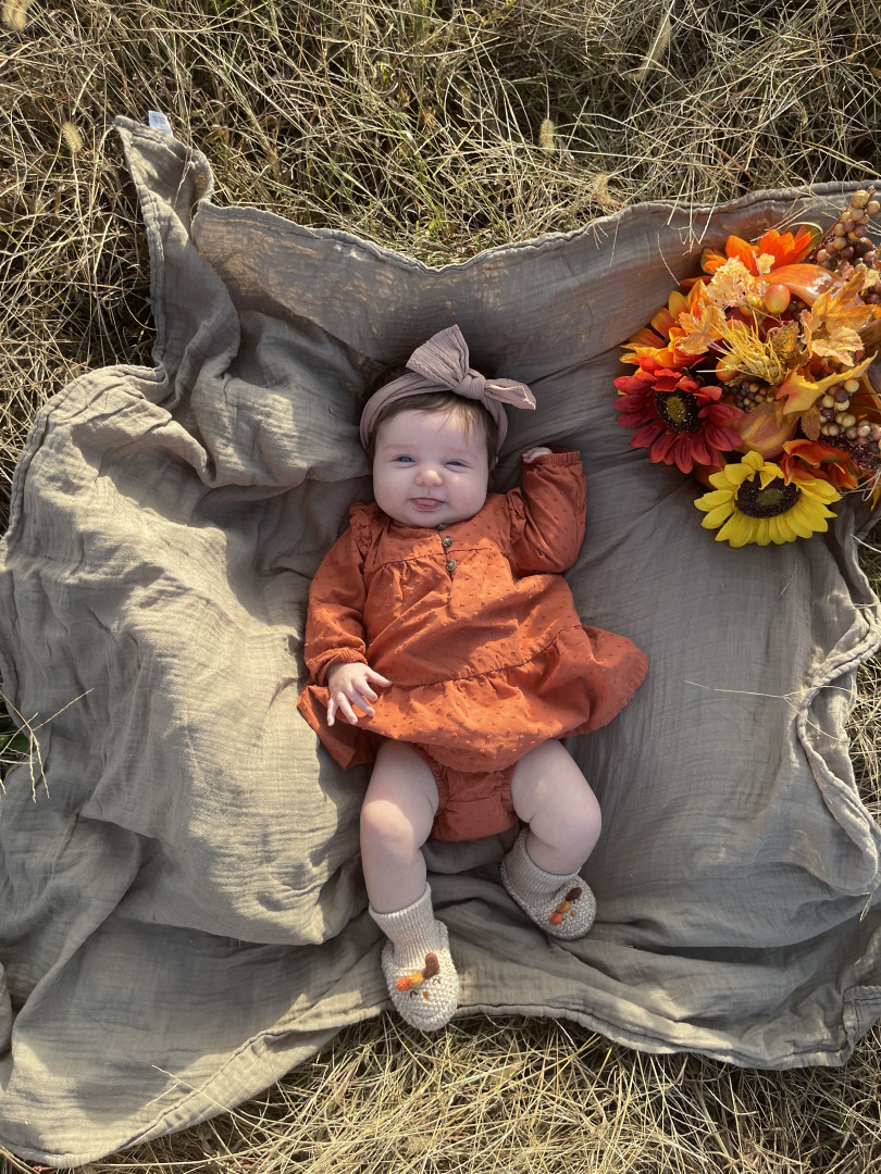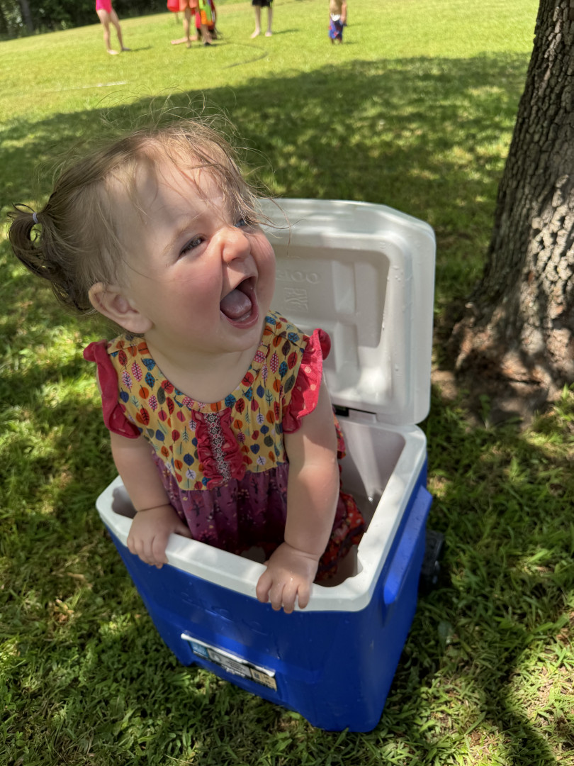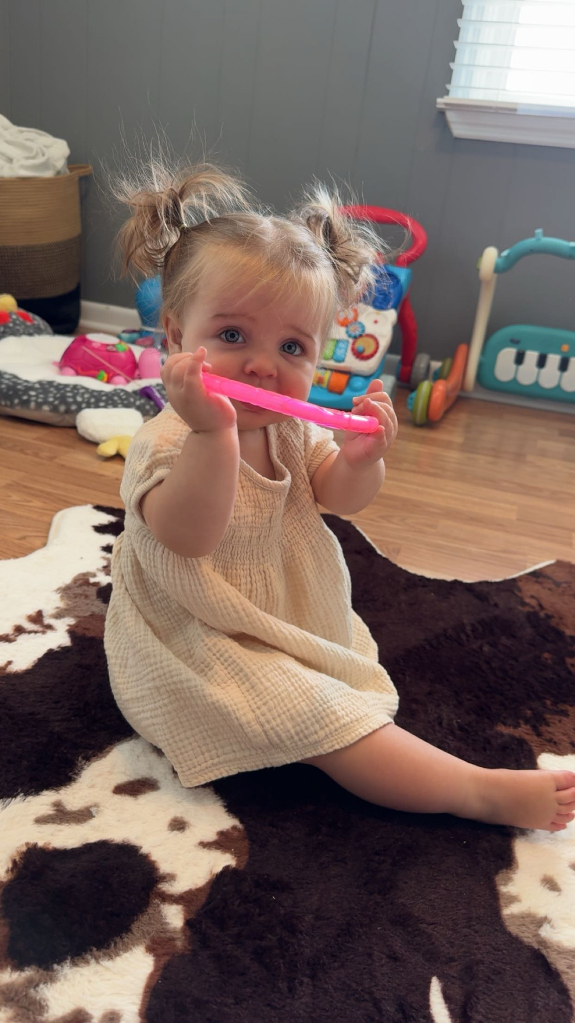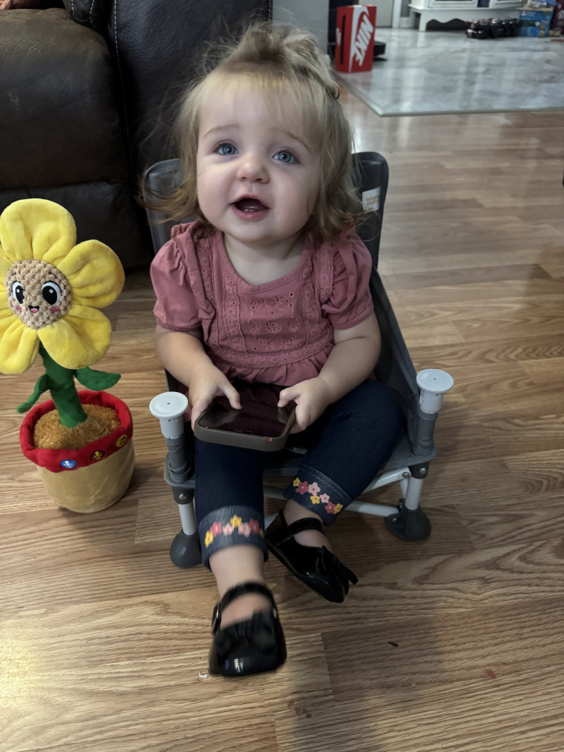 She is so excited all of the time. She smiles big and laughs loud. She’s a daddy’s girl but still loves cuddle breaks with mom!