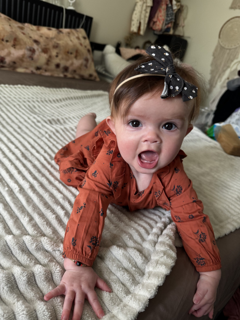 Honestly, she is the most happiest baby, she is so perfect. There are no words to describe her. She loves to laugh. She loves to drink her breastmilk on the dot lol. Her favorite word is dada. When she sees her dada her whole face and world lights up!