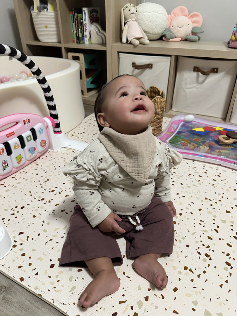 What are Chiara's favorite activities?Chiara loves playing with her stuffed animals and musical instruments. She has a knack for finding rhythm in anything she touches and is always bouncing around with energy. She also loves exploring the house, especially our giant Goldendoodle and his bed. And when it’s time for a bath, she’s in heaven. Water is one of her favorite things!