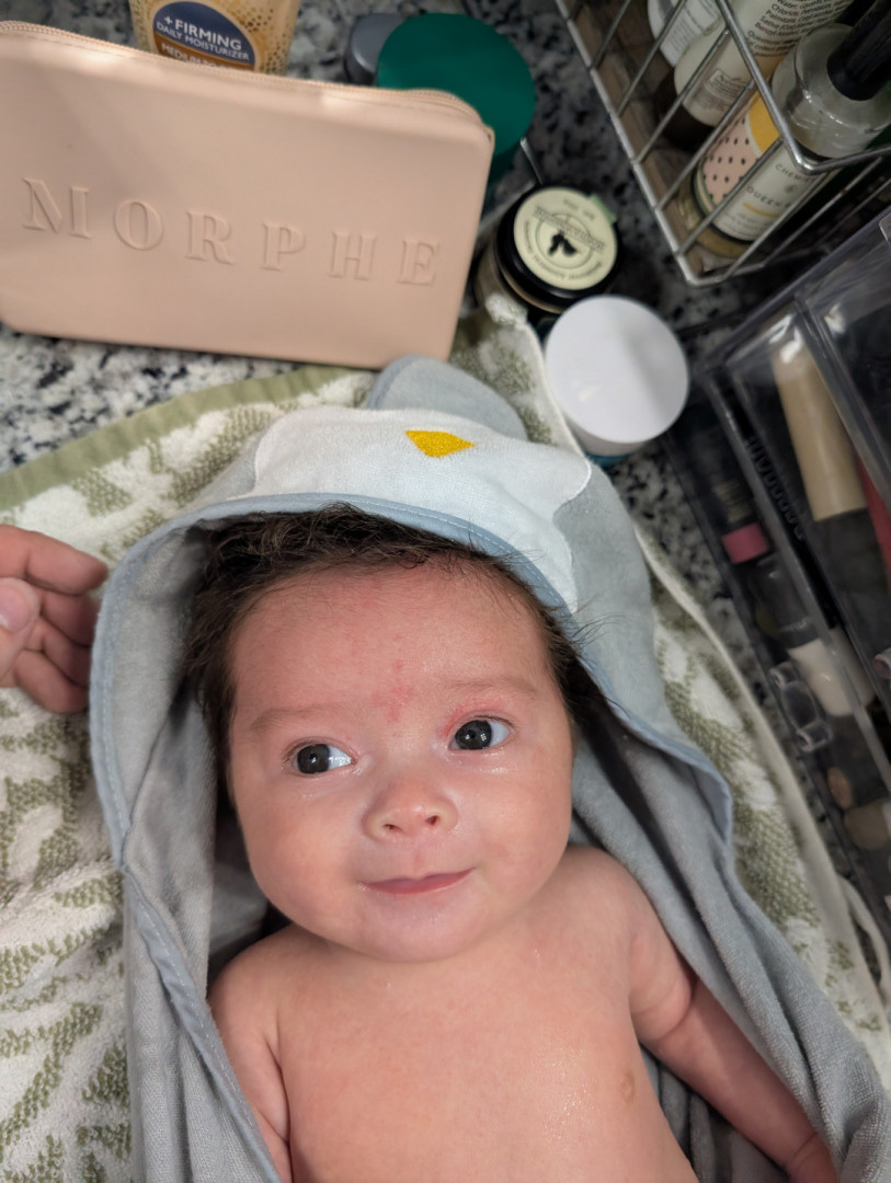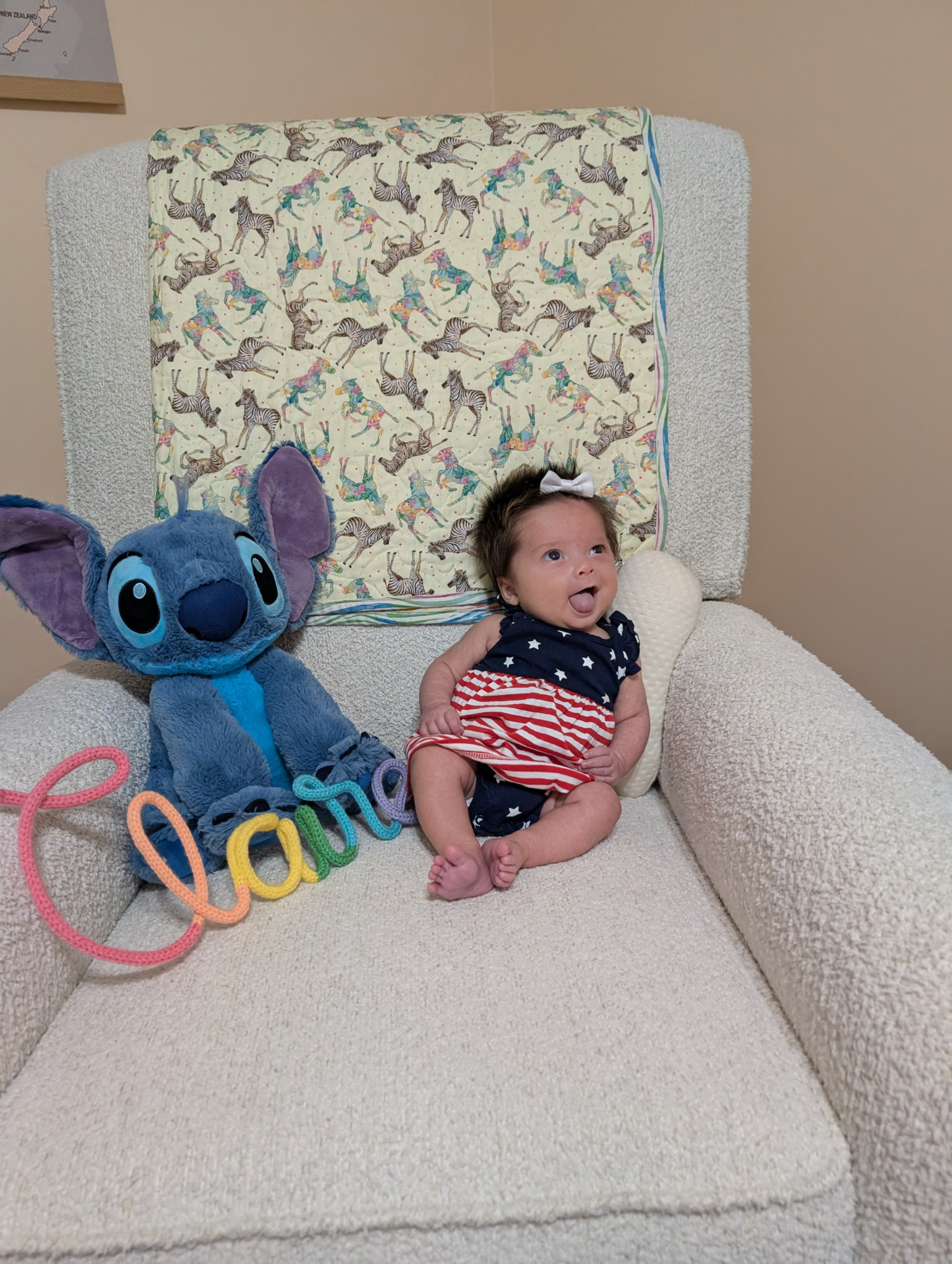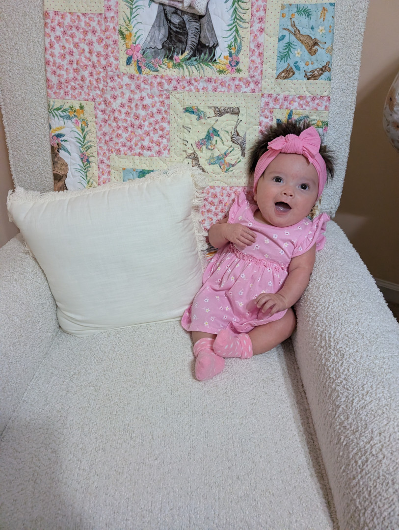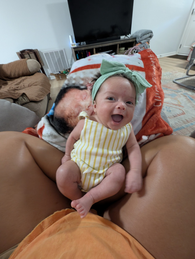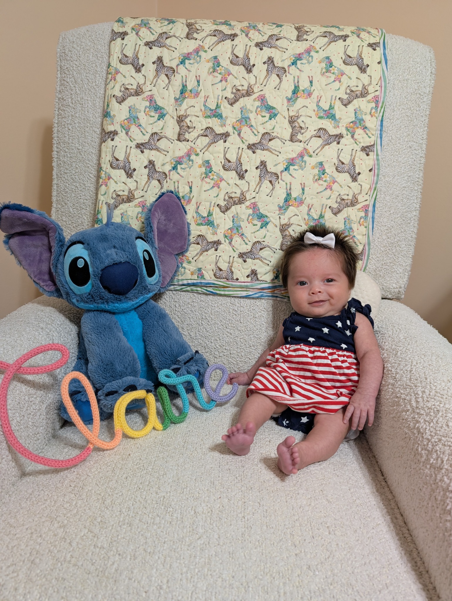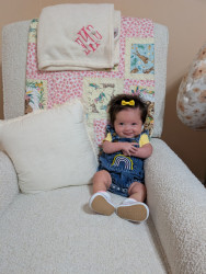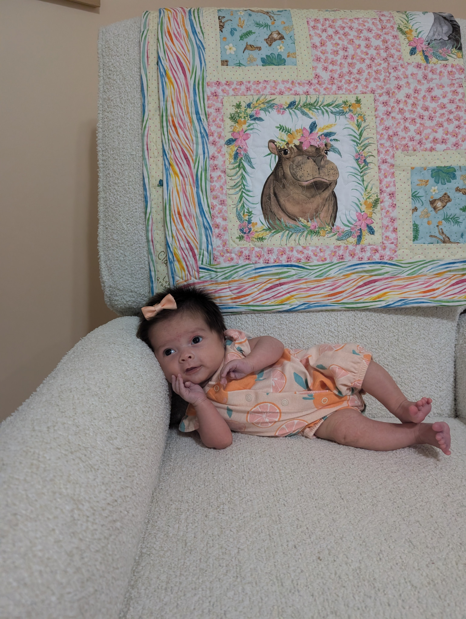 Claire may have arrived early but she’s been unstoppable since—now over 14 lbs and full of charm! She’s curious, expressive, and already flashing sweet smiles. We’re pretty sure she said “hi” the other day! With a full head of hair that looks like a baby wig, she rocks all the accessories. Nicknames include Claire Bear, Chipmunk, Chicken, “Claire with the Good Hair" & Claire Lizzie.