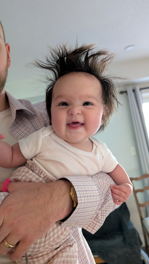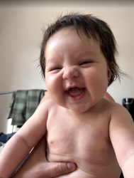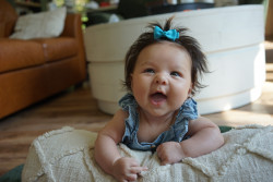Claire is a very content and easy-going baby. She loves people of all ages and quickly makes friends with everyone. She rarely fusses and we are told time and time again that she is the most chill baby. She is an easy laugh and will make you feel like the funniest person in the world.