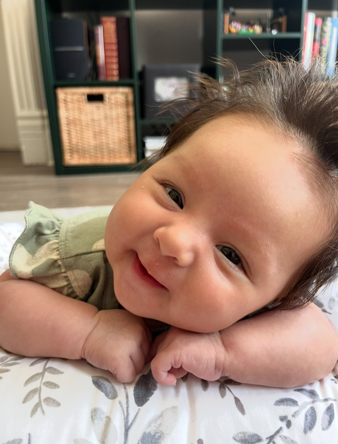 What are Claire's favorite activities?Claire loves tummy time, rolling over, and swimming. She enjoys singing and dancing, and we often joke that she is a thrill seeker. She loves being thrown into the air, when we run down the hallway with her, and when we squat with her in our arms. She has recently started to babble more and loves to have conversations.