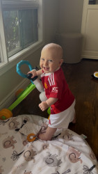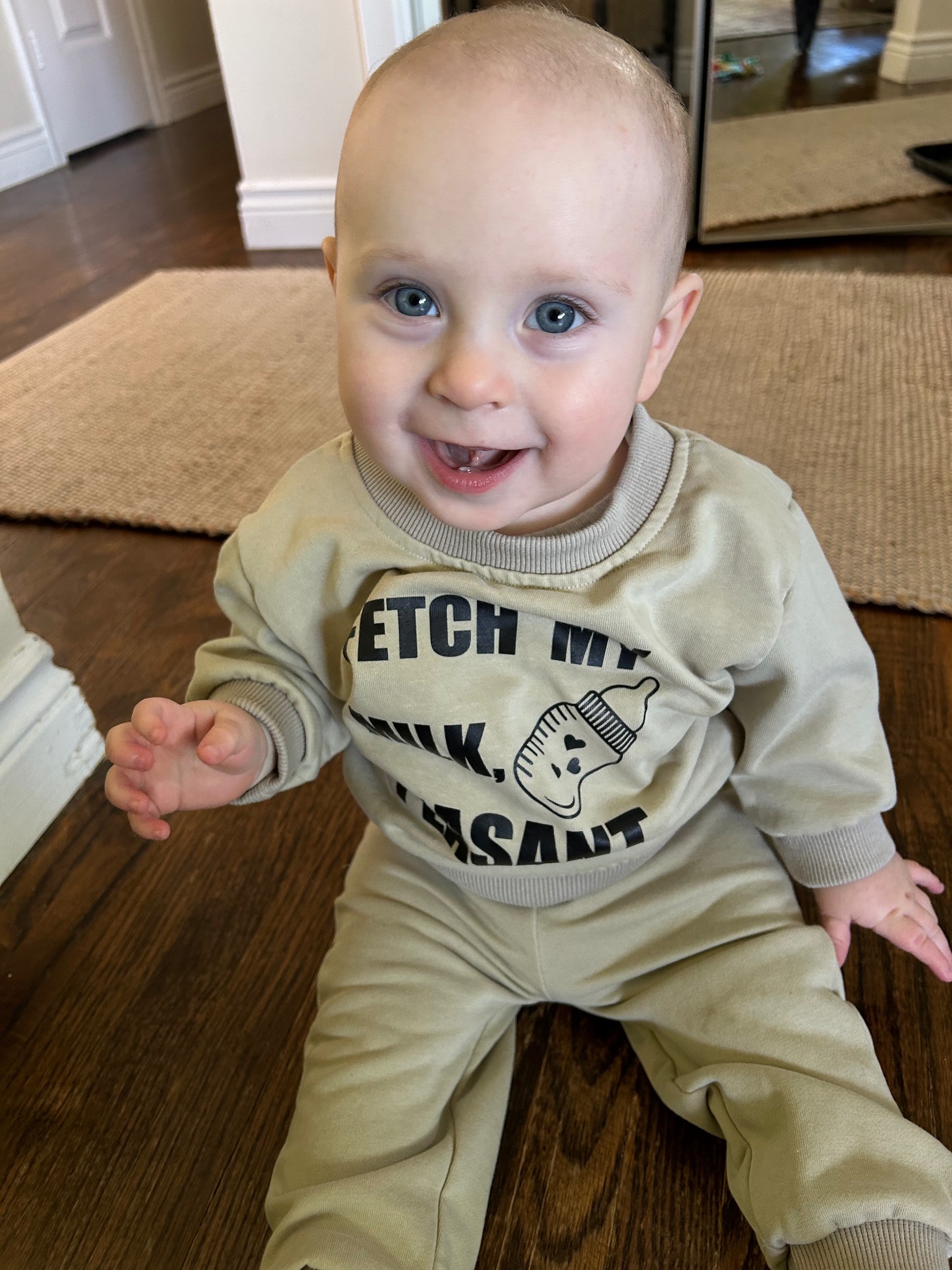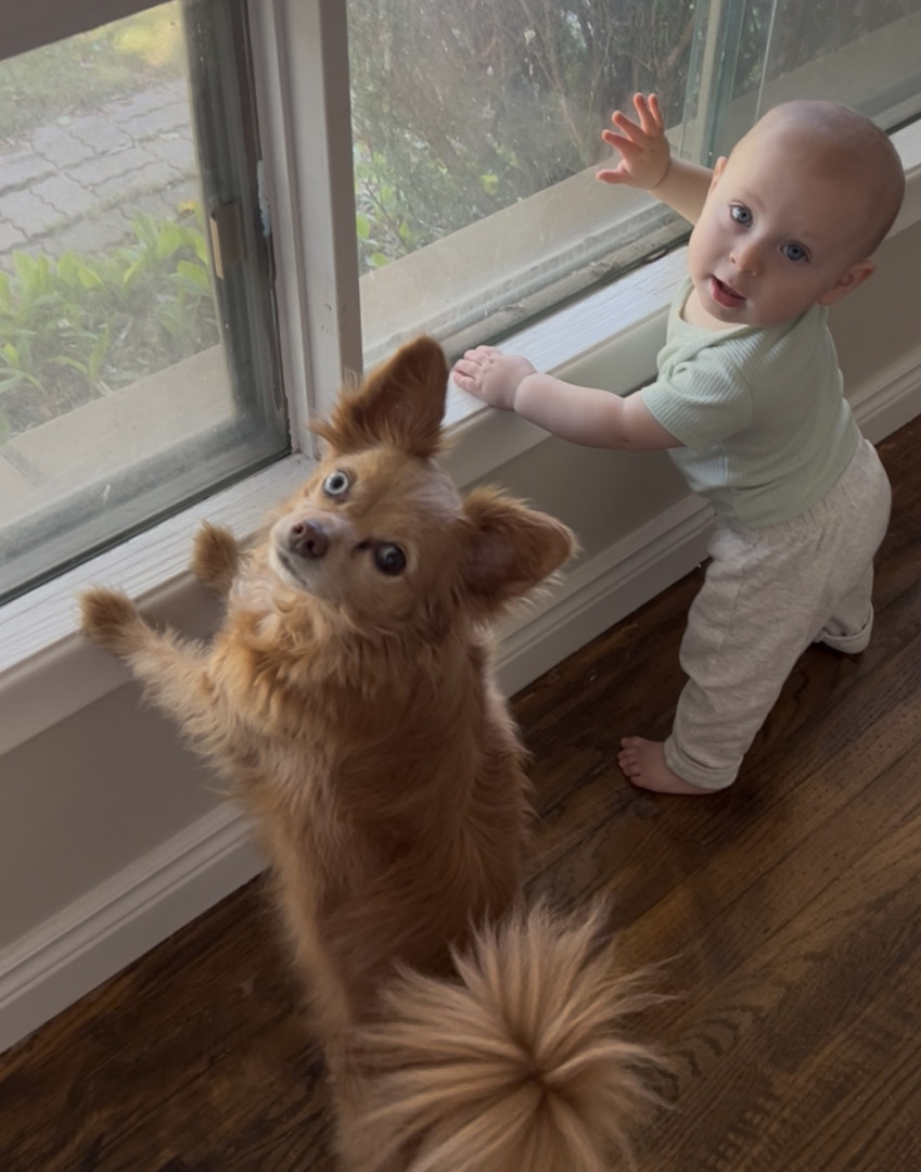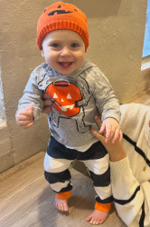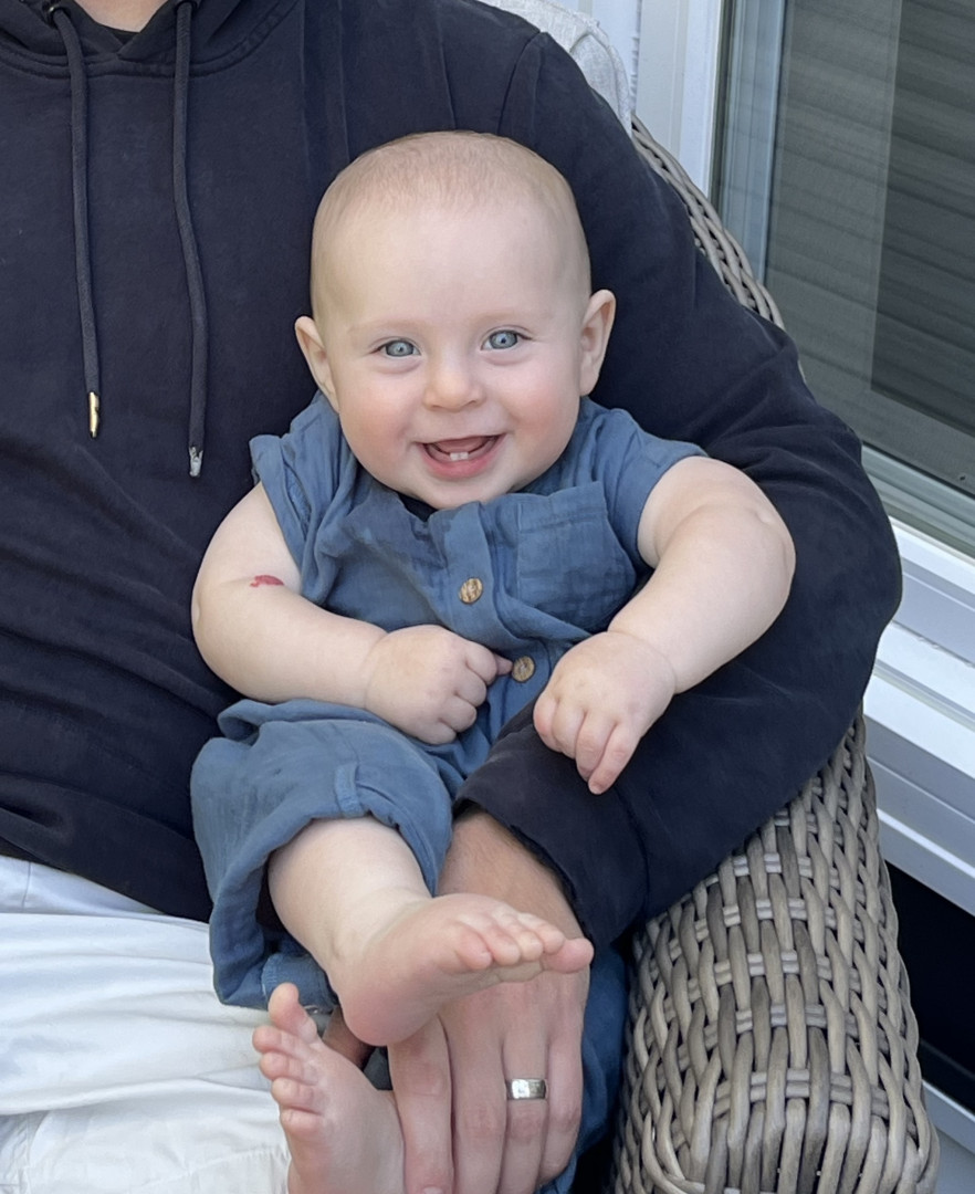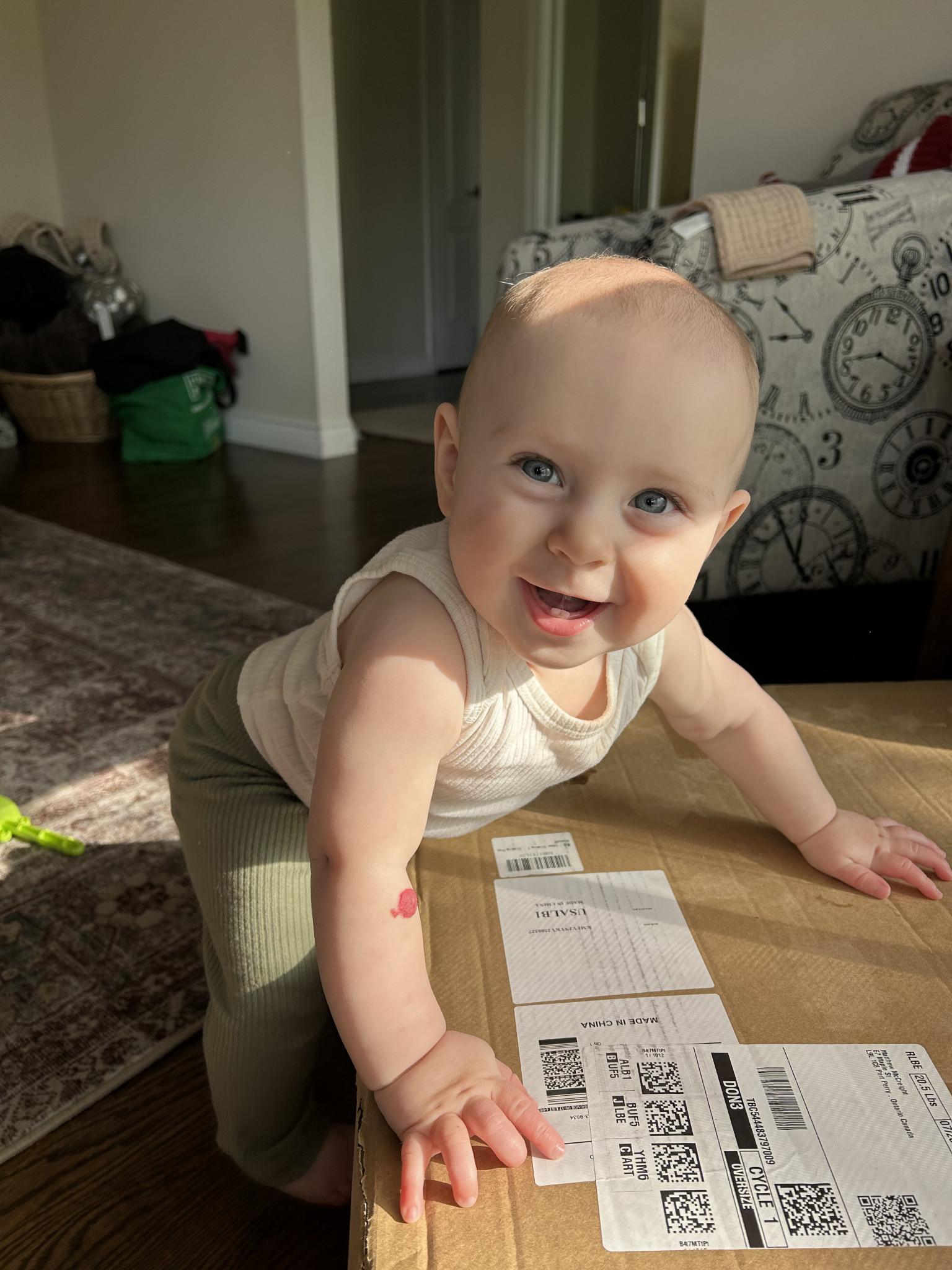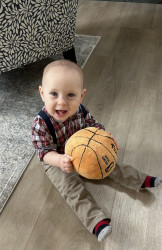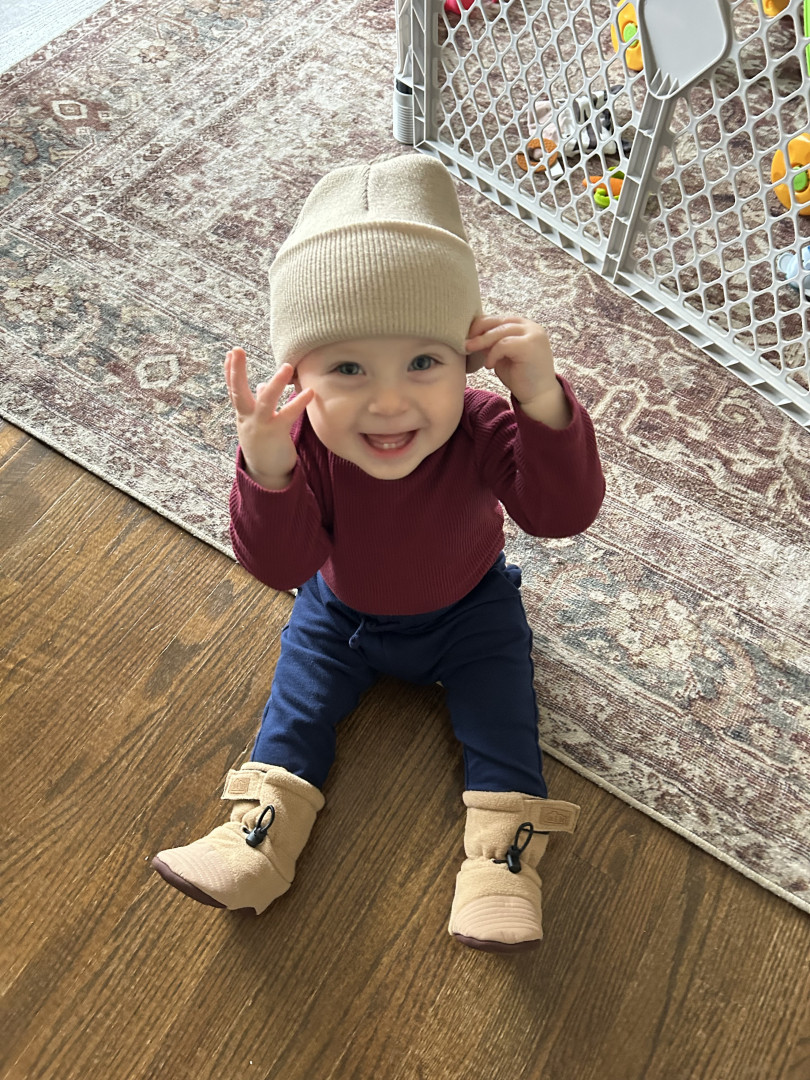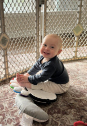 Cohen is pure joy! He’s always smiling and on the go! He’s curious about everything around him and rarely sits still, eager to explore every corner. His playful energy is endless and he lights up any room he’s in. He has a special love for our dog, Cali, and their bond is already so sweet. His bright spirit, big smile and unstoppable energy bring so much laughter and love to our home every single day.