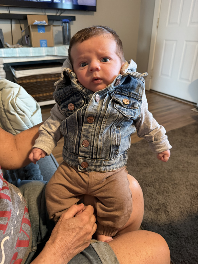 Colter should be baby of the year because he has so much hair and he’s such a happy baby with so much fun personality.