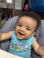 Cooper is full of life. He is rarely fussy & is always ready to dance around. He loves music, vibrant colors & hearing people laugh. He is very aware of his surroundings, always wanting to take everything in & be observant. He is already starting to say mama & loves the all the attention. Also, this boy can eat! And loves himself some Ms. Rachel.