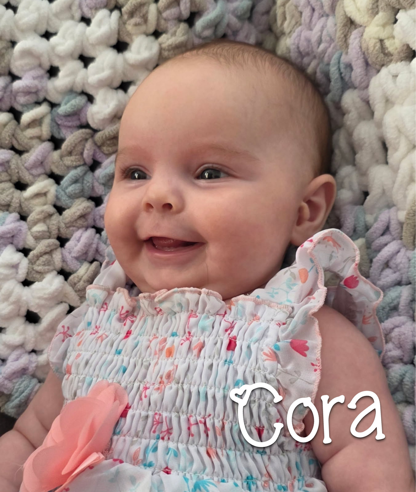Cora is a bundle of joy with the sweetest soul and a smile that lights up the room. Her giggles and constant baby coo charms everyone she meets. With her bubbly spirit and heart-melting grin, she’s pure sunshine in a tiny package!
