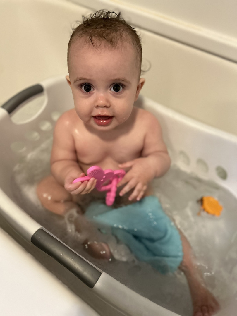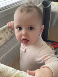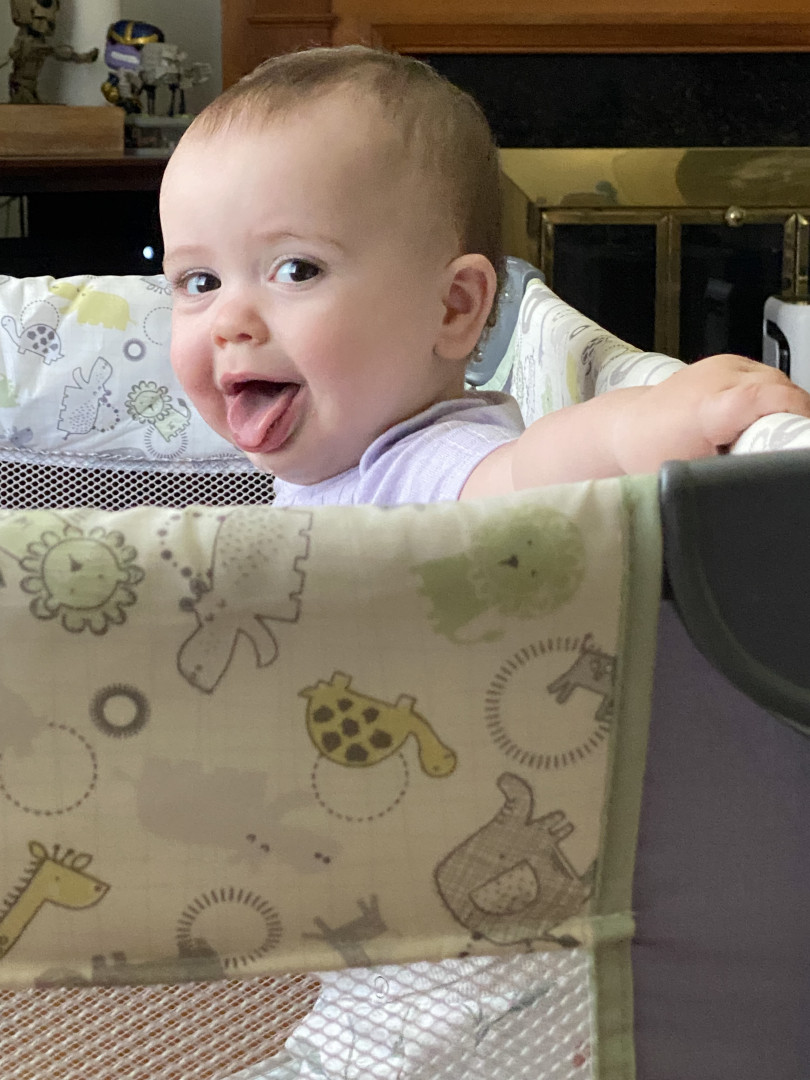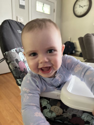 Cora is a fun baby. She has a hearty laugh. She puts herself to sleep when placed in her crib, she greets people with a smiley happy face. She lets you know when she wants more food lol!