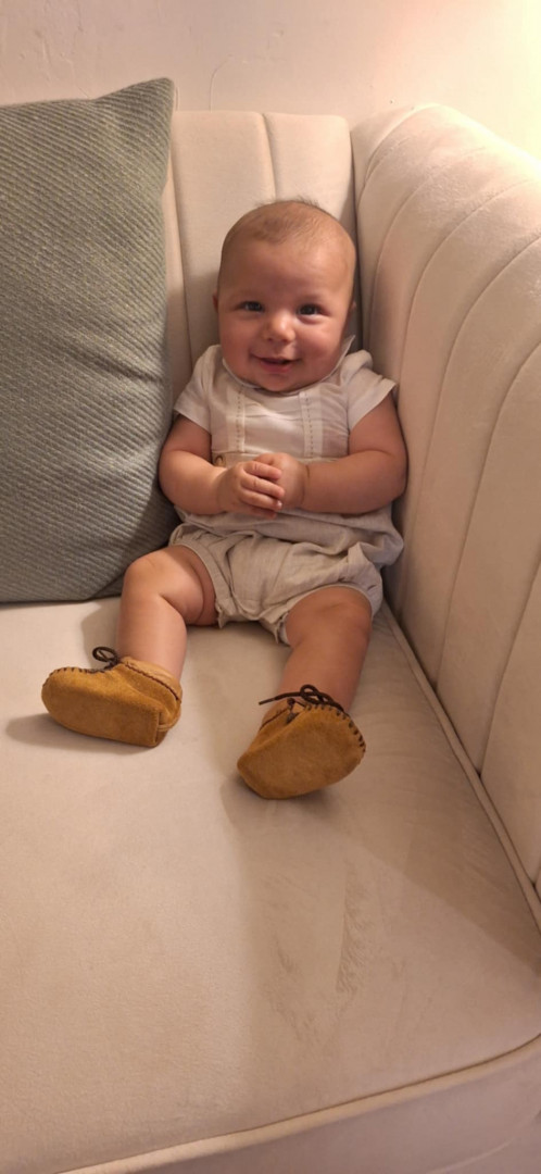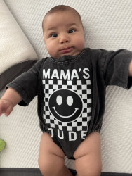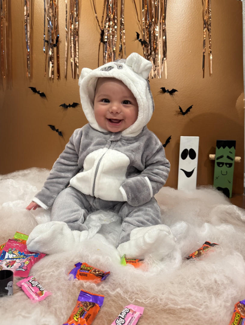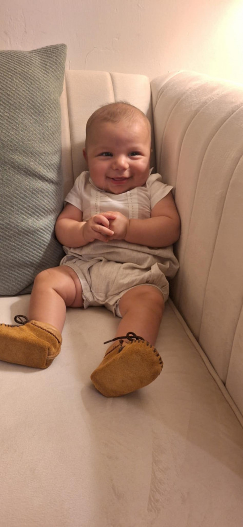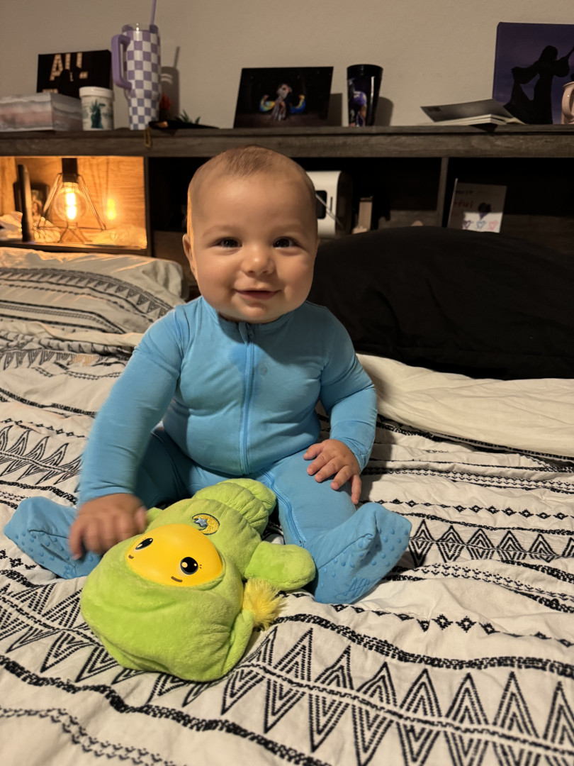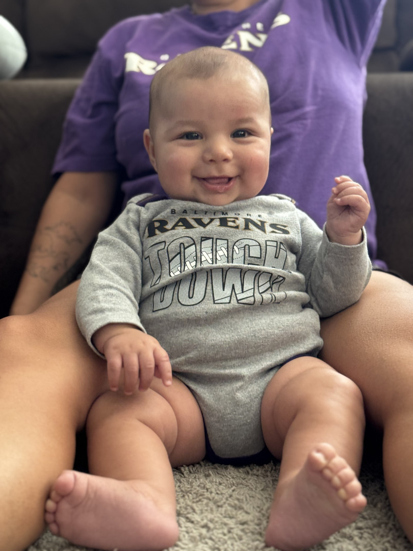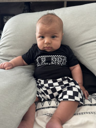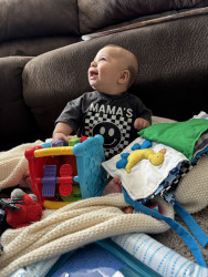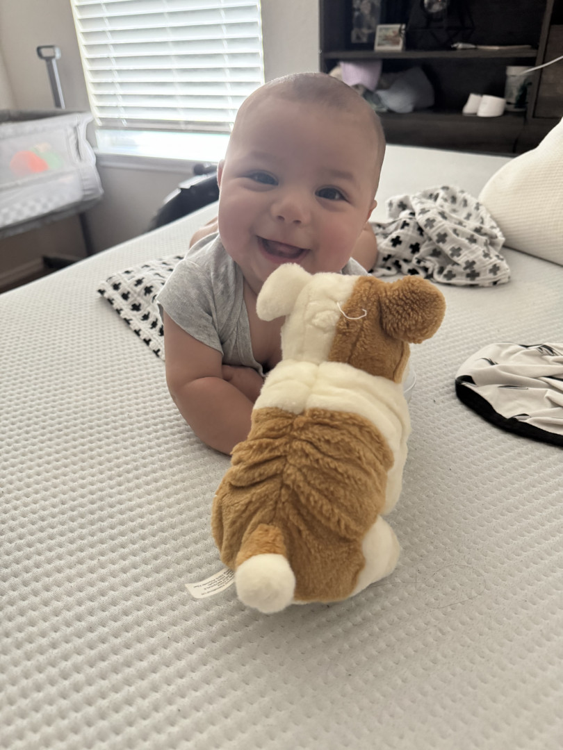 He’s our meatball! He likes to be silly, look at you with sparkles in his eyes and has a smile that will make you melt! He’s a master at tummy time and is ready to be on the move!! Our squish LOVES his big brother and is always watching his every move! Our bubs is a happy guy who gives as much love as he receives! He truly is our greatest gift!