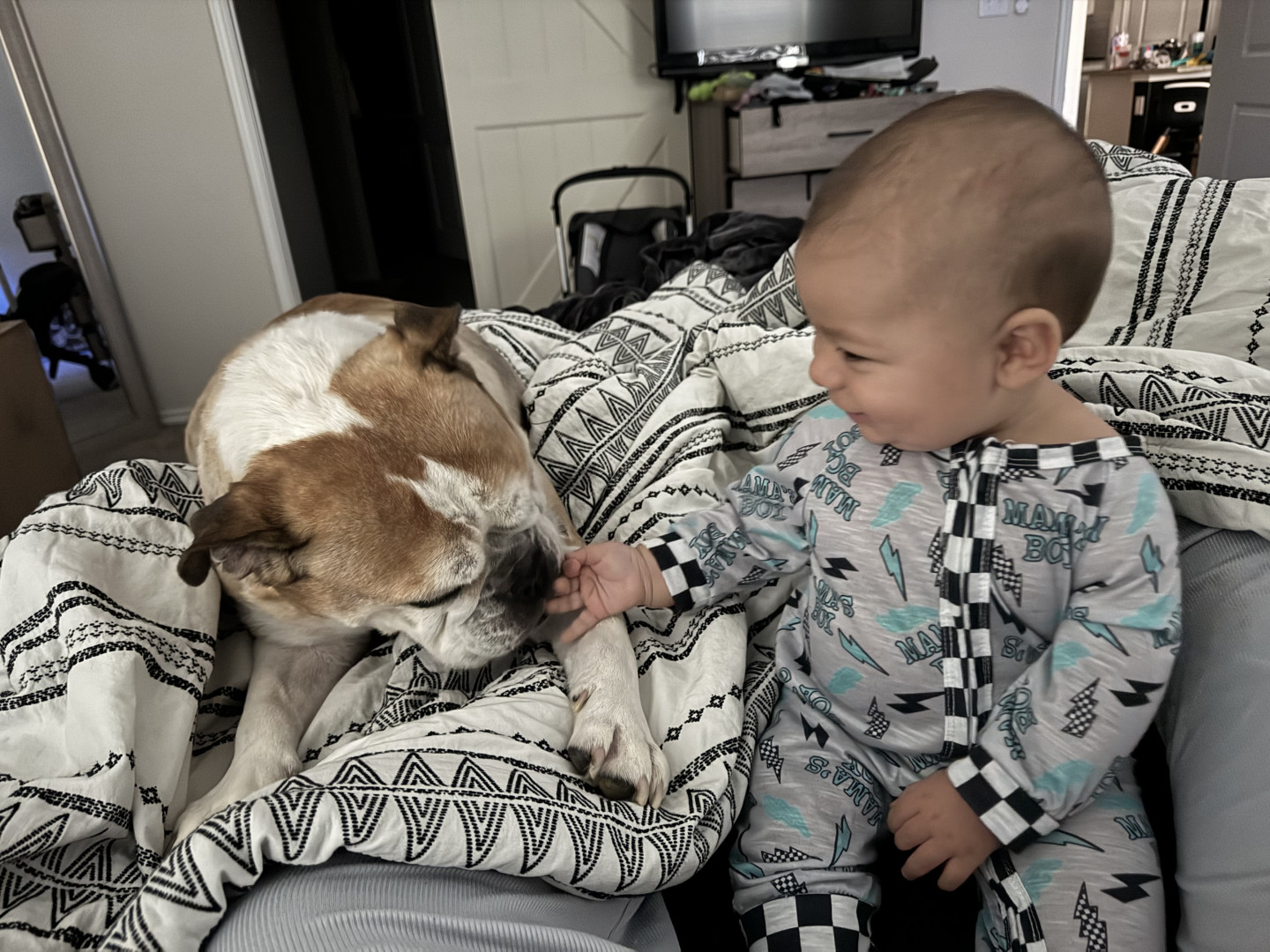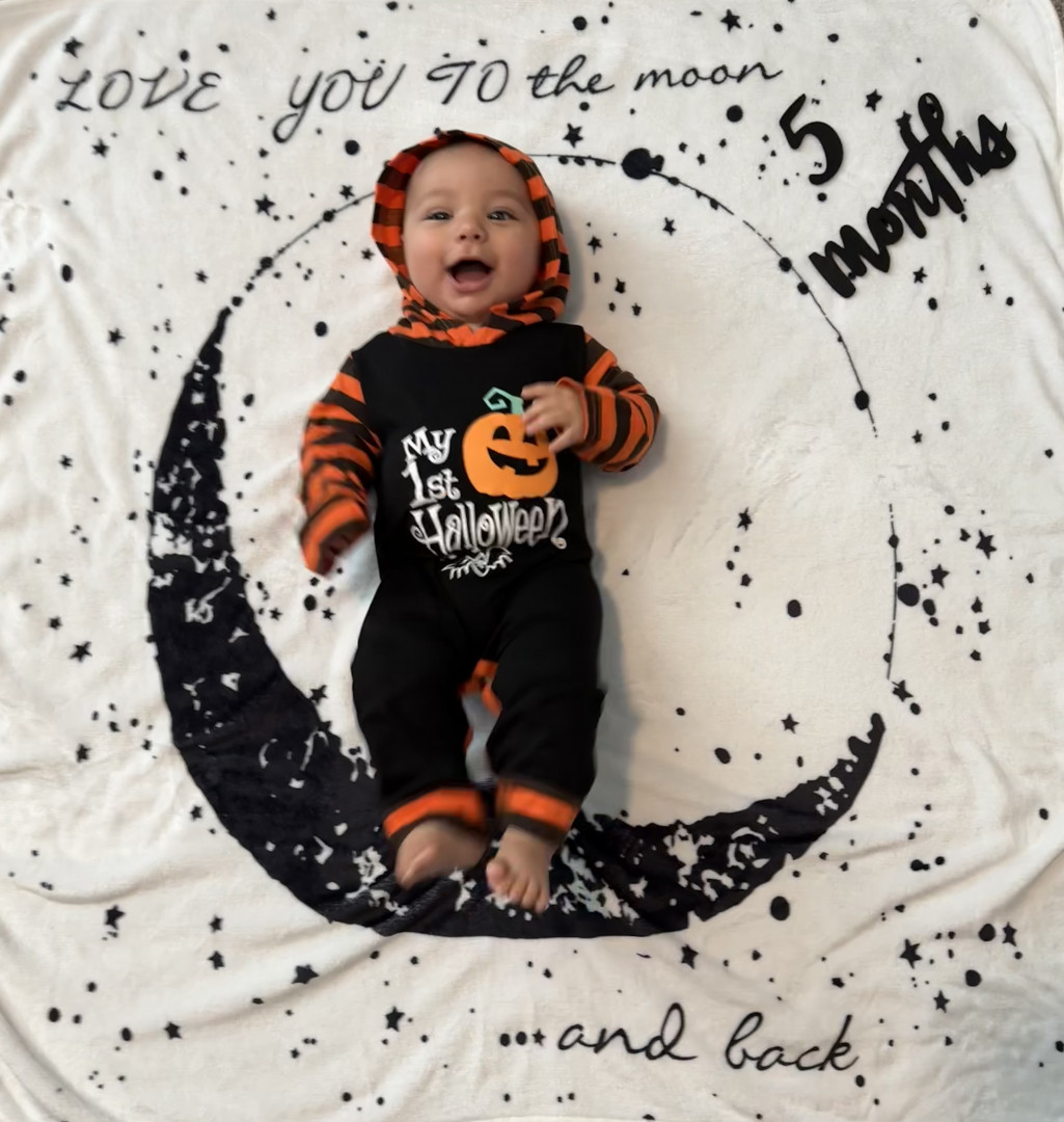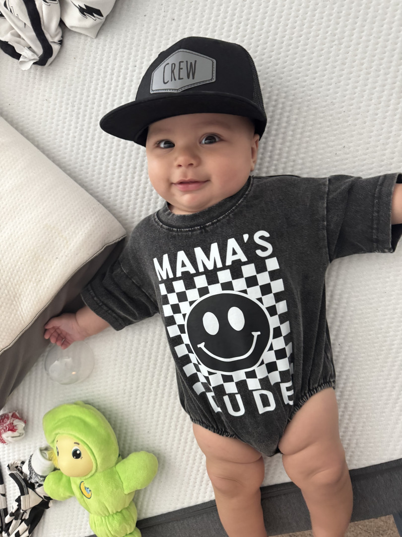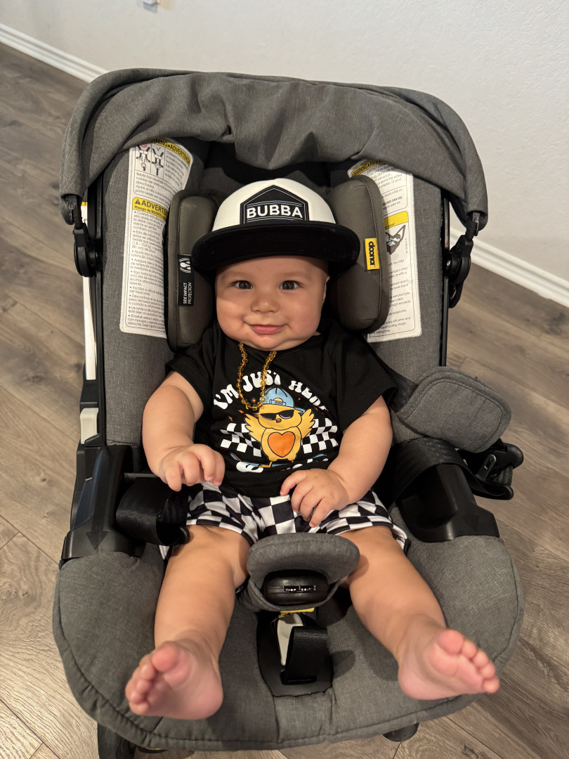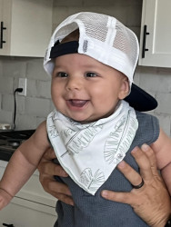 He’s our meatball! He likes to be silly, look at you with sparkles in his eyes and has a smile that will make you melt! He’s a master at tummy time and is ready to be on the move!! Our squish LOVES his big brother and is always watching his every move! Our bubs is a happy guy who gives as much love as he receives! He truly is our greatest gift!