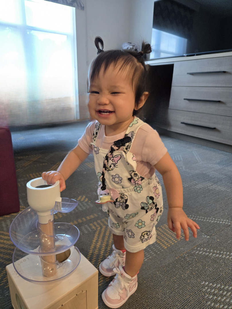What are Cybelle Ann's favorite activities?She loves spending time with her family, eating, playing, as well as trying to sing and dance, and traveling. She had been on 28 flights and 6 different countries by 11 months. She loves opening every thing, pretending to cook, just going out - anywhere.