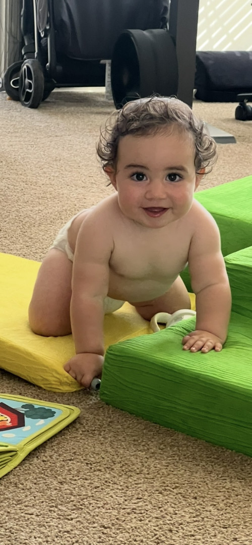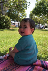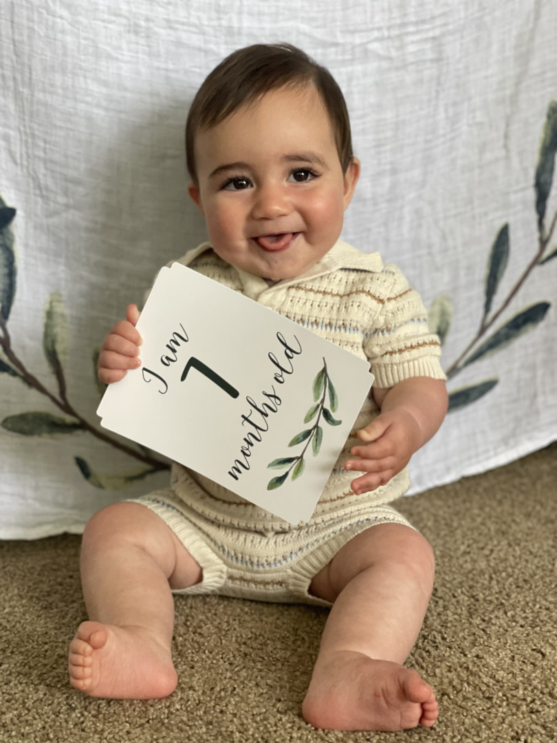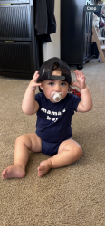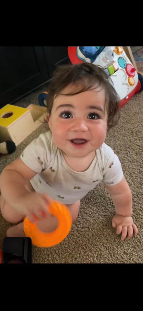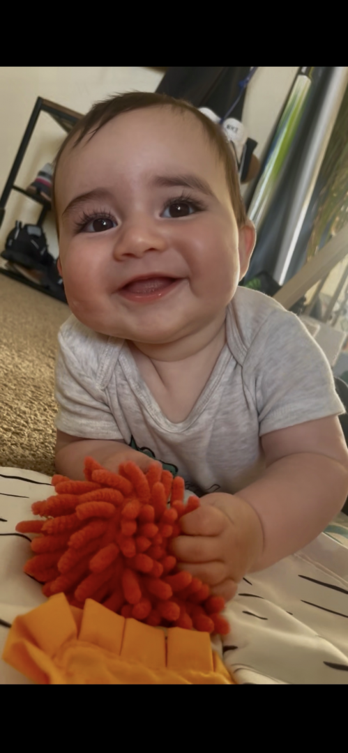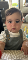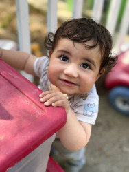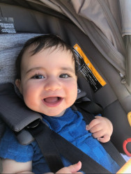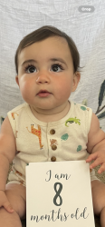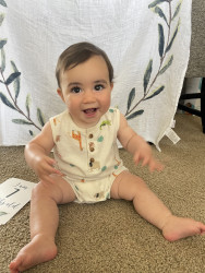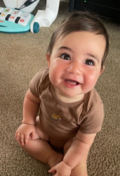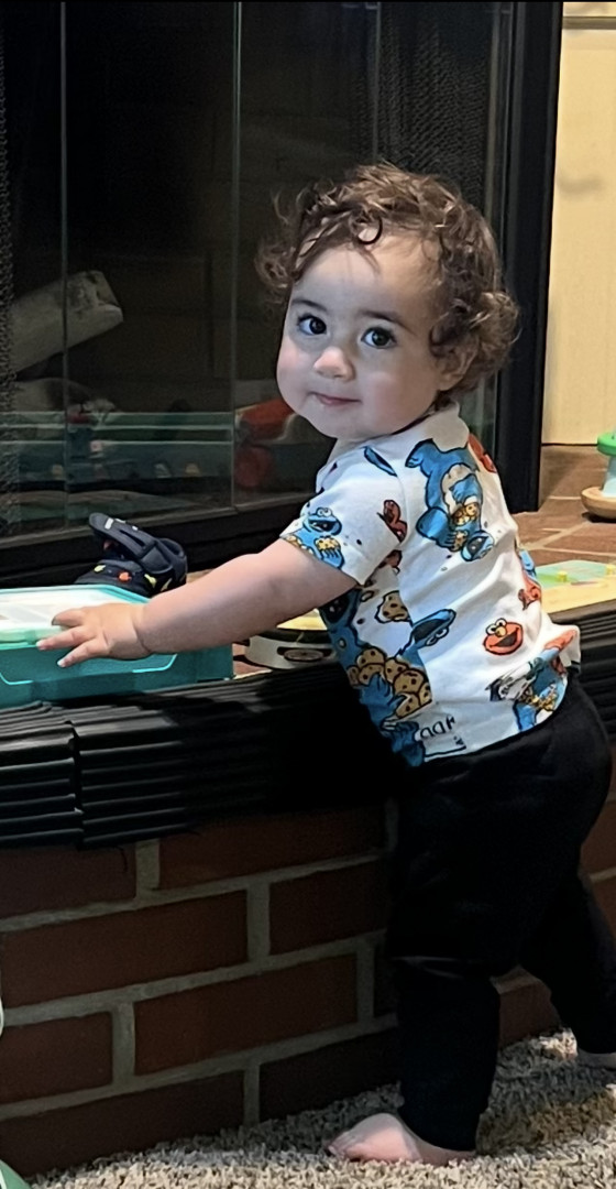 Cyrus is sweet, observant, and loves to give slobbery kisses. He can be very serious and make us work for laughs at times, but when he does give us a belly laugh he melts our hearts. He is the light of our world and is getting more and more curious about the world around him everyday. He loves to watch and learn from other kids and is known at daycare as a dinosaur because of the sound he makes.