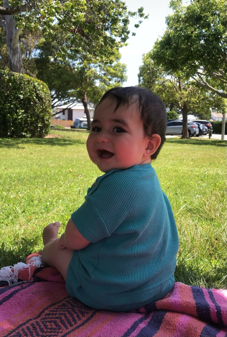 What are Cyrus Talaie's favorite activities?Cyrus loves to pet his fur sister Sage, drink milkies, eat food (his favorites are blueberries, yogurt, pizza, spaghetti), play in the grass, go on neighborhood walks, and watch big kids playing on the playground. He also loves cuddles from his grandparents and going splashing in their swimming pool!