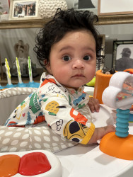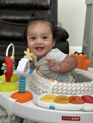What are Cyrus Spanos's favorite activities?He loves playing in his jumperoo toy and bounce as high as possible! He loves to read books and sing songs with you!
