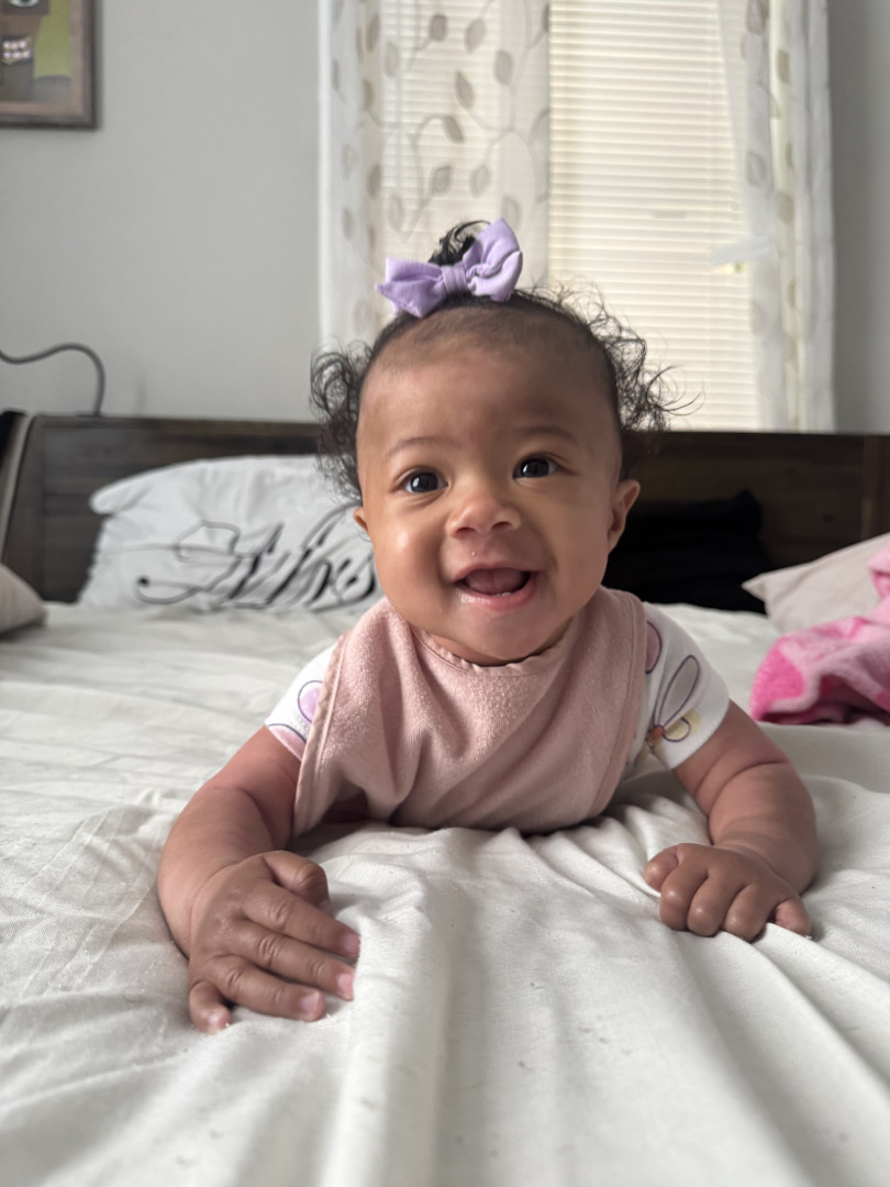 What are Daisy Blu Wright's favorite activities?Aside from tummy time with her favorite toys & stuffed animals, she will play you the finest tune one her “footsie” piano. It’s propped up during car rides so she can express herself through sound. She also enjoys watching the WNBA in her daddy’s arms and gameshow network with mama(daily). She probably recognizes Steve Harvey’s voice from when she was in the belly.
