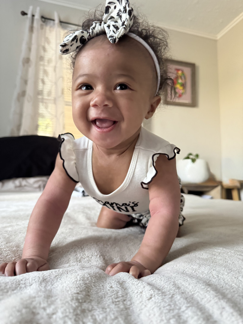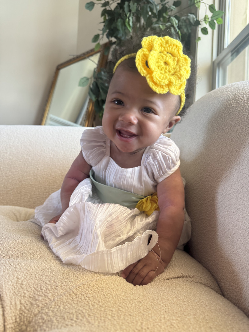 I’ve truly never met a baby happier than Daisy.She’s been smiling since 2 weeks old & her energy is contagious to others.A true flower.