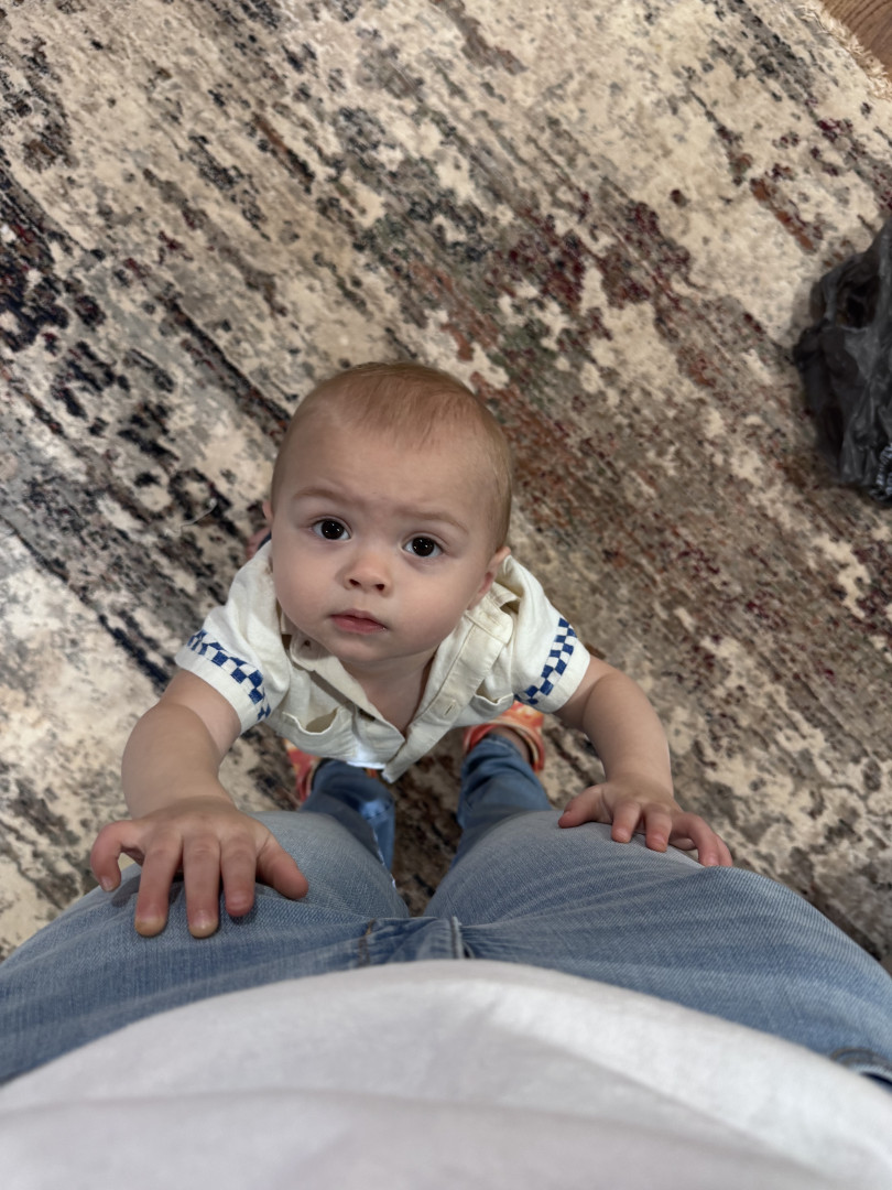 He’s the happiest easiest boy you could imagine - with his own naughty streak obviously . If you’re lucky enough to earn a smile it’s the sweetest of them all . Nothing is off limits to him, the funniest thing you can tell him is to “stop it” and he will belly laugh . He’s also SO NOSY. He’s in everyone’s business. Stares at everyone in a public setting especially when they talk. His eyebrows really say it all they MOVE.