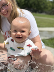 What are Damon's favorite activities?He loves to crawl around getting into everything he shouldn’t, splash pads, play with toys, watch ms Rachel and any of the wildlife channels . He loves being outside and helping feed the chickens . Playing with his dogs and chasing his cats