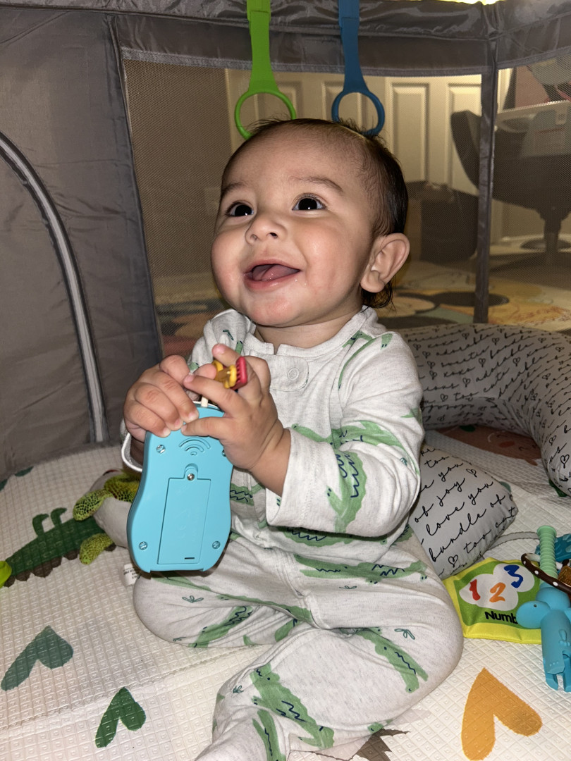 What are Daniel Lerma's favorite activities?Daniel’s favorite thing to do right now is crawl around and play with toys he is now learning to stand on his own and pull himself up onto things and taking steps, he also likes to run in his walker and shout and watch Ms. Racheal. Super active baby so enjoys getting into all things and learning what each toy and object does.