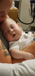 Deklynn was born at 24w & 3d of gestation, weighing only 1lb 4oz. He has fought extremely hard to still be here today. A true fighter.