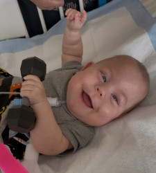 What are Deklynn's favorite activities?I love snuggles with my mom and play time with my dad. I get lots of visits from nurses, doctors and all of my therapy specialists. My favorite toys are my baby Einstein aquarium and my dumbbell rattle at the moment. Tummy time and walks outside in my new stroller are around the corner.