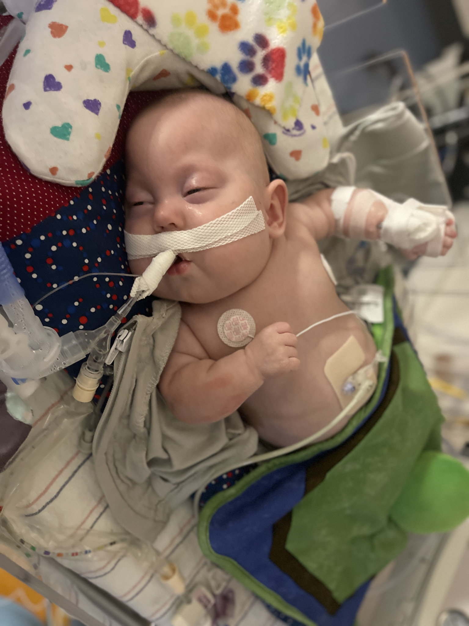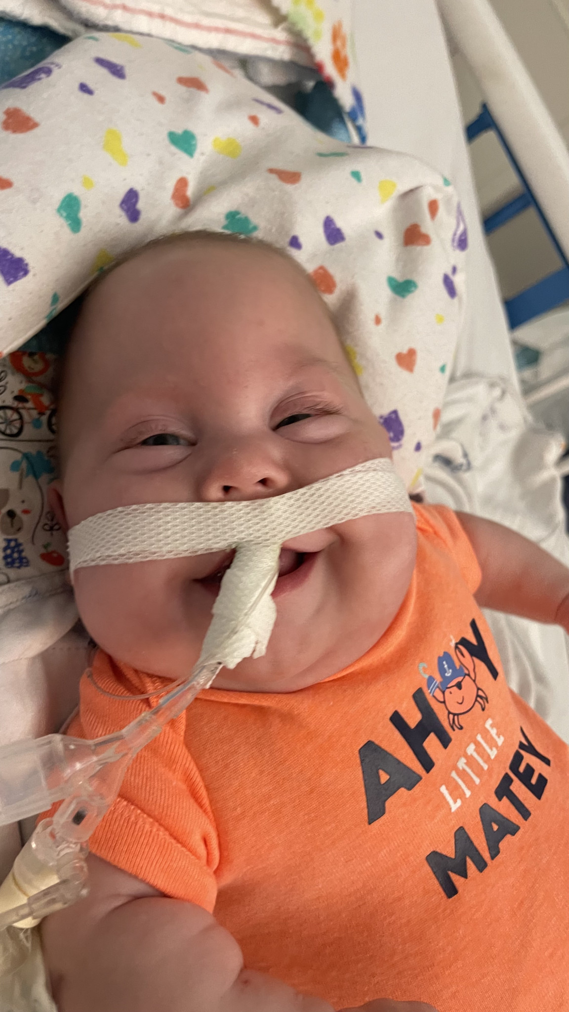 I am a spunky little zip. Always moving and grooving. I love to smile! For my first 7 months, I was intubated. On July 23rd, I underwent a tracheotomy surgery. I have more freedom now to move, develop and grow. I did have some belly troubles and had to have another surgery which resulted in an ileostomy being placed. I’m grateful because my belly hurts less now and I can eat more.