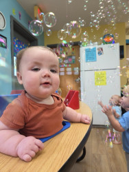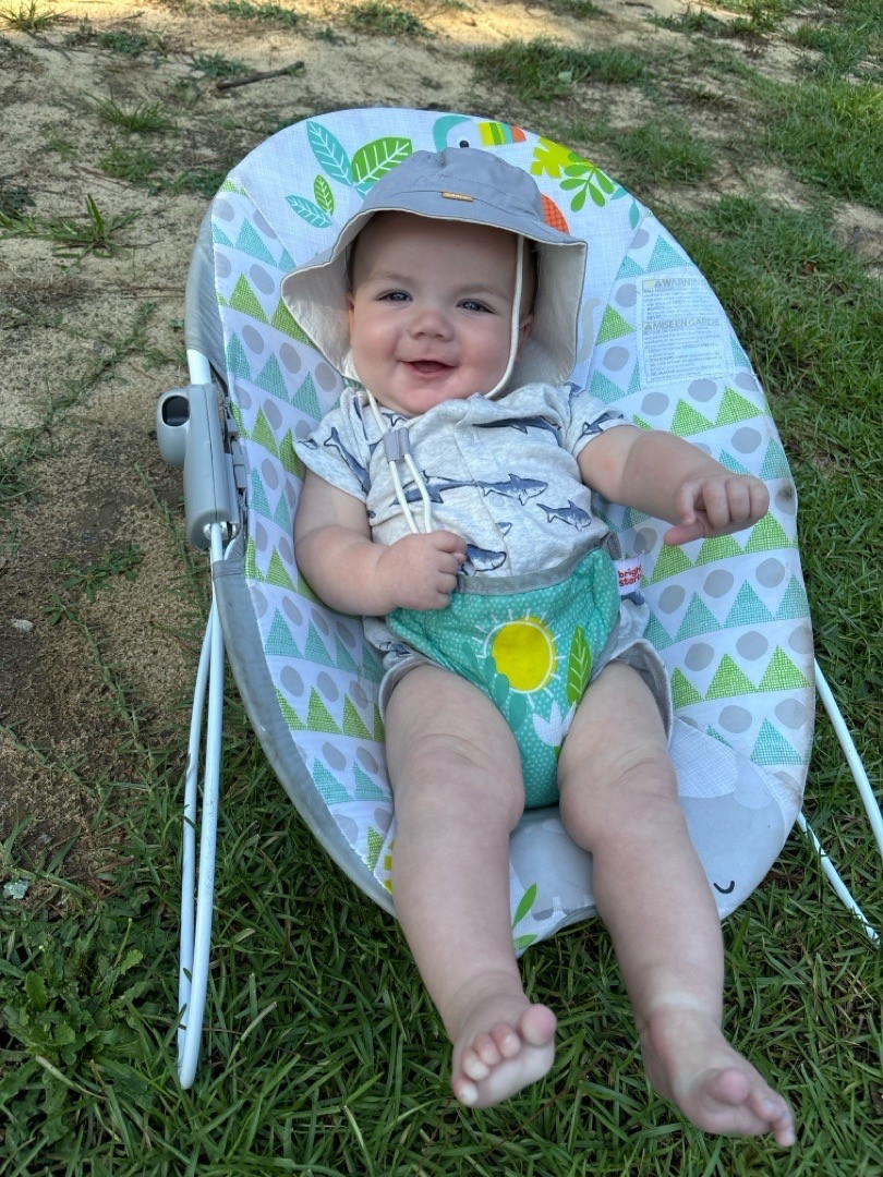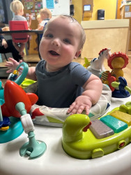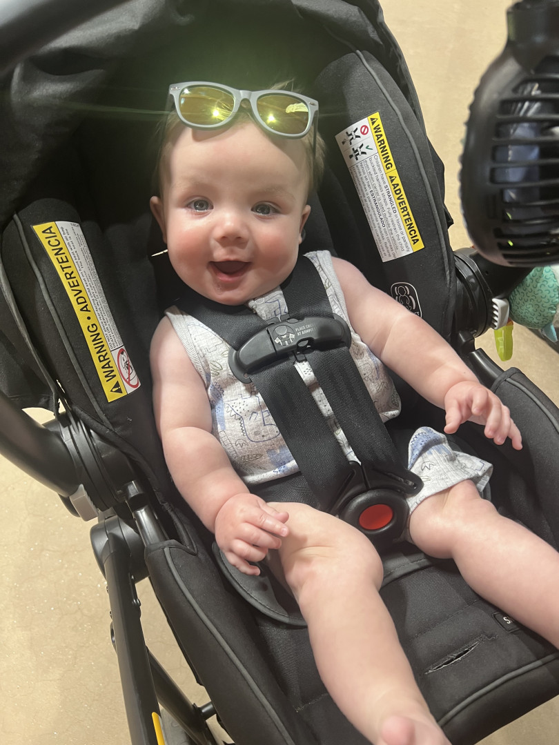 He is the most calm, happy and funniest baby ever. When all the others are crying and fussing, he says,” what’s wrong?!” Loves everyone