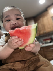 What are DonMiguel's favorite activities?DonMiguel is a little explorer—scaling couches, racing in his walker, and turning bath time into a splash party. His biggest joy? Food! Whether picking fresh fruit in his grandparents’ garden or tasting something new, every bite feels like an adventure for him.