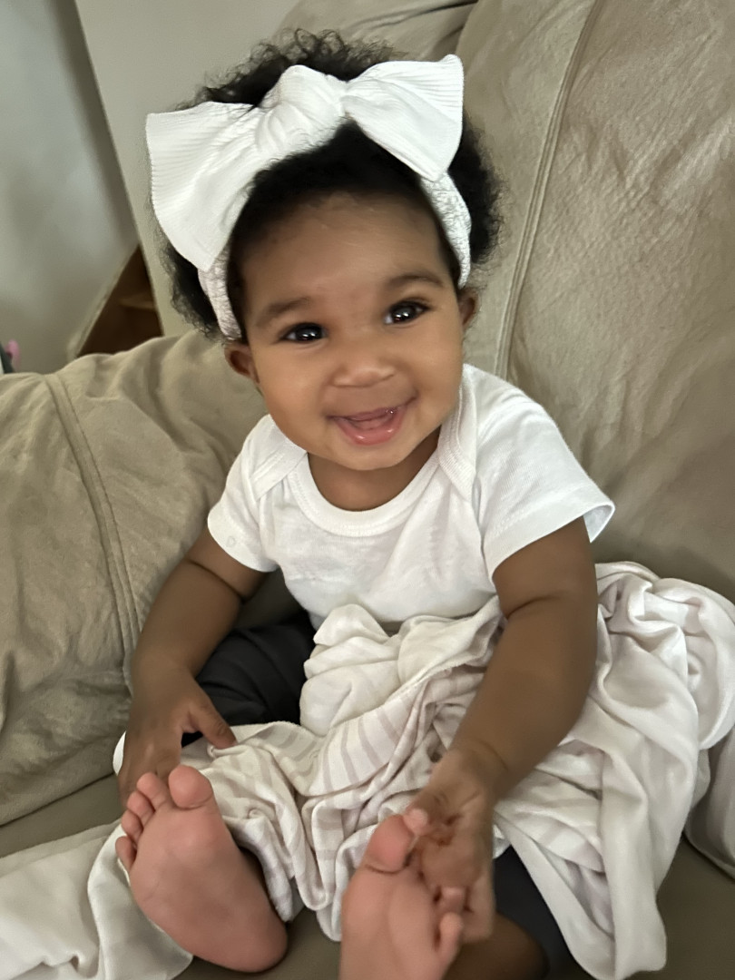 She’s a happy baby who enjoys observing everything in her sight. Communicating with others is one of her favorite things, especially after her belly is full. She truly has a light within her that shines through her personality.