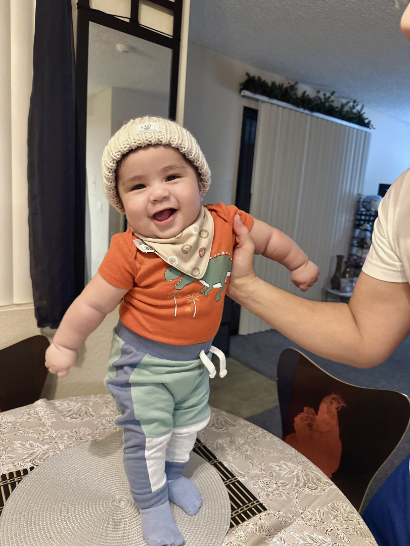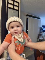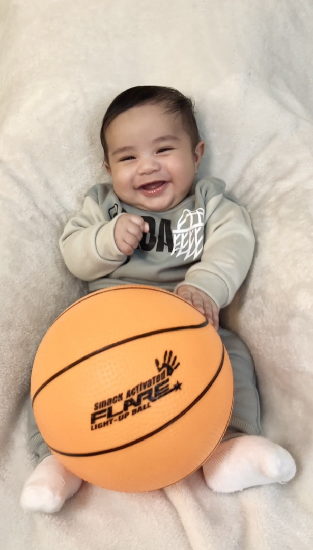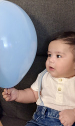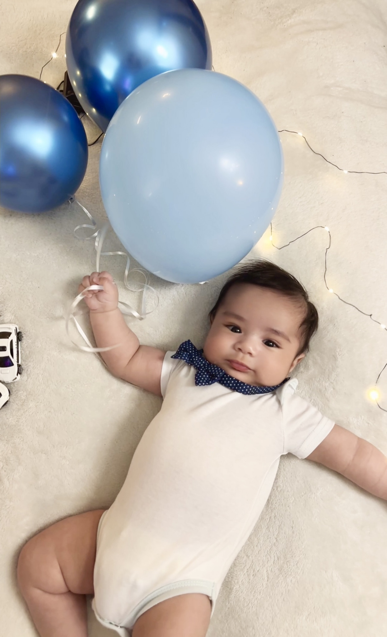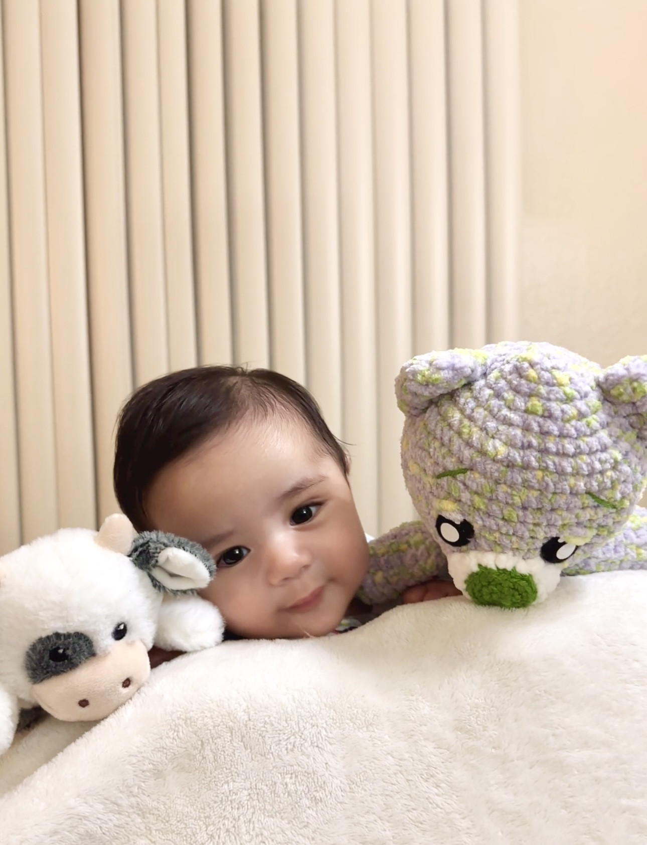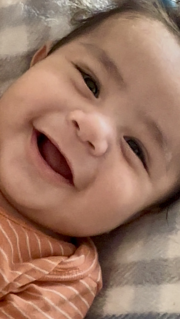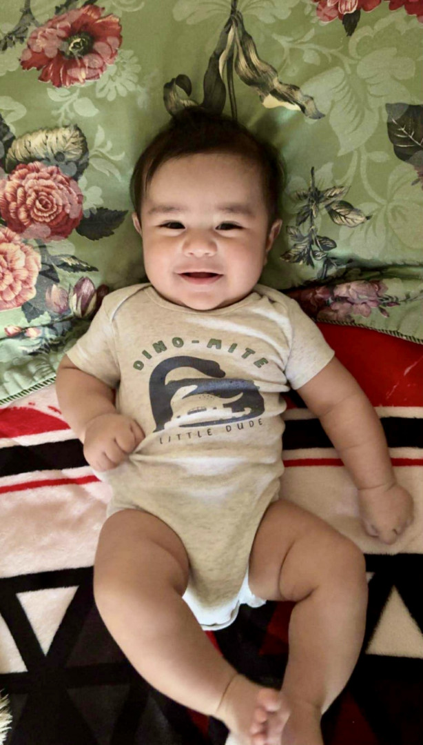 At 4 months old, he can socialize with the people through his babbling noises, giggles and laugh. He likes to be tickled and giggled like a puppy🥰