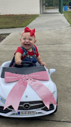 Eliana Dill has such a big personality in a tiny body. She’s spirited and funny, making faces like her dramatic mad face and keeping us laughing. She loves music, clapping like she’s cheering us on, bouncing and squealing with joy. She’s happiest giggling at her big brother, shows gentle love toward animals, and is so affectionate. Her sweet smile and laughter brighten every day.