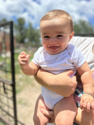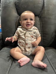 My baby should be baby of the year because he is the happiest, most easy going baby! He loves to smile at everyone and is super friendly.