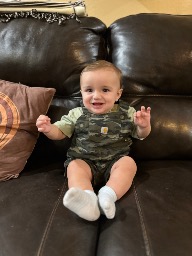 He is very energetic, loves to climb on everything. He loves his brother and sister so much, he screams and laughs anytime they even give him a look.