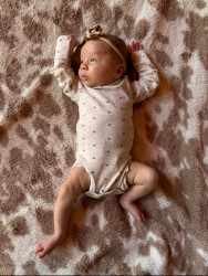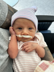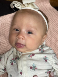 Ellie Kay is sweet as honey and strong as a diamond! Her first 17 days were spent in the NICU, where her favorite Nurse Rose helped her find her strength everyday. Every doctor praised her as a fighter with strength like her mama. Her sparkling, tranquil personality lights up a room, stopping every adult in their tracks as they pass by. As her Daddy kisses her cheek, she flashes a sleepy, toothless smile and flutters her lush lashes. Ellie is full of love, serenity, and sweetness!