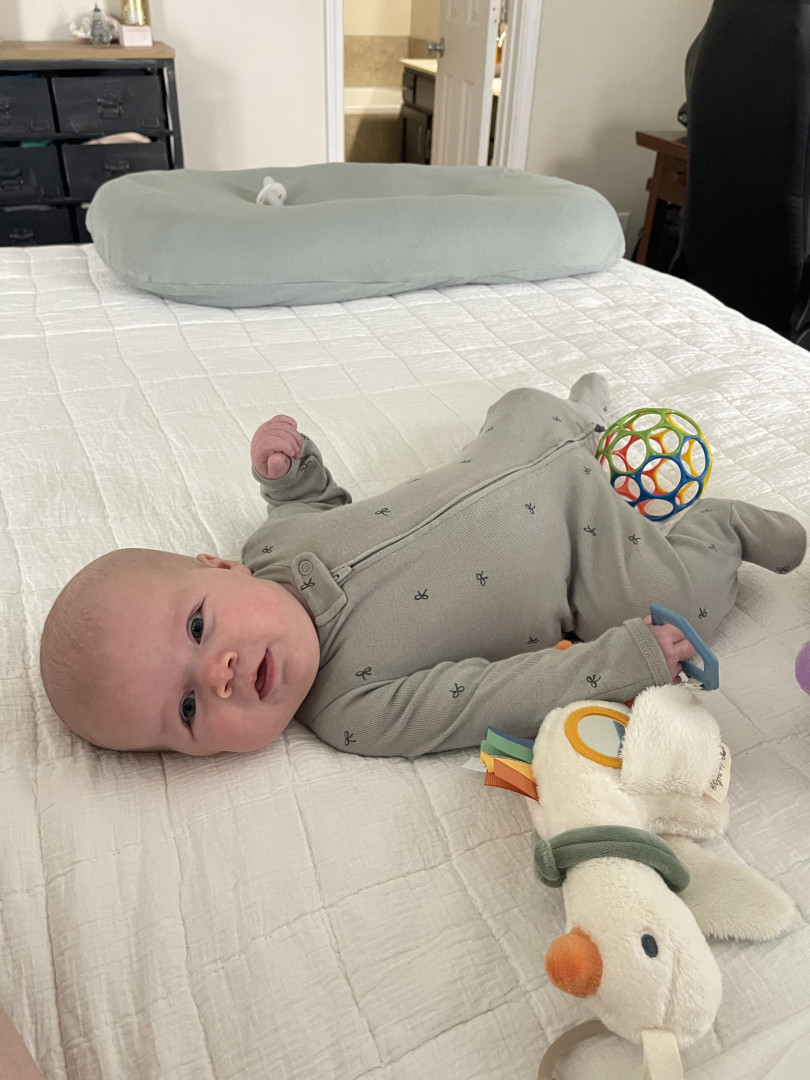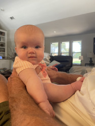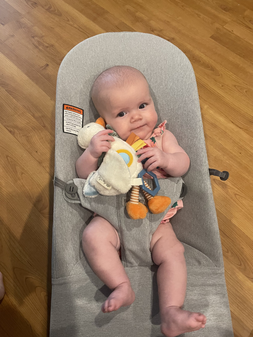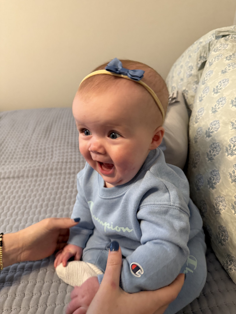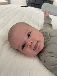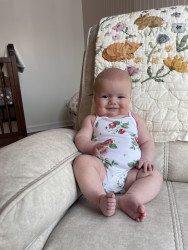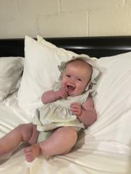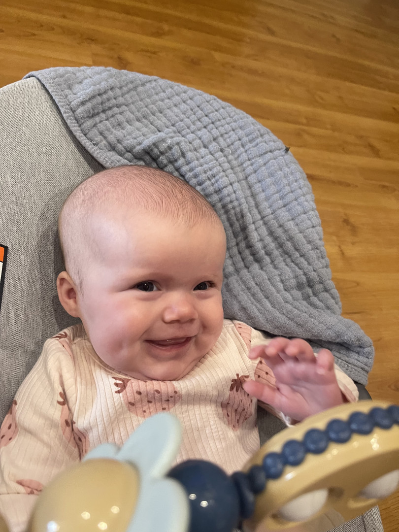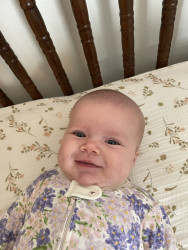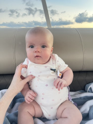 Our 3-month-old is full of wonder—curious about every sound and face around her. She’s sweetly affectionate, always ready to melt hearts with a snuggle or a wide-eyed gaze. Her little expressions say a thousand words, and lately, she’s found her voice—babbling away like she has stories to tell. A gentle, joyful soul with a spark of curiosity in every coo and glance.
