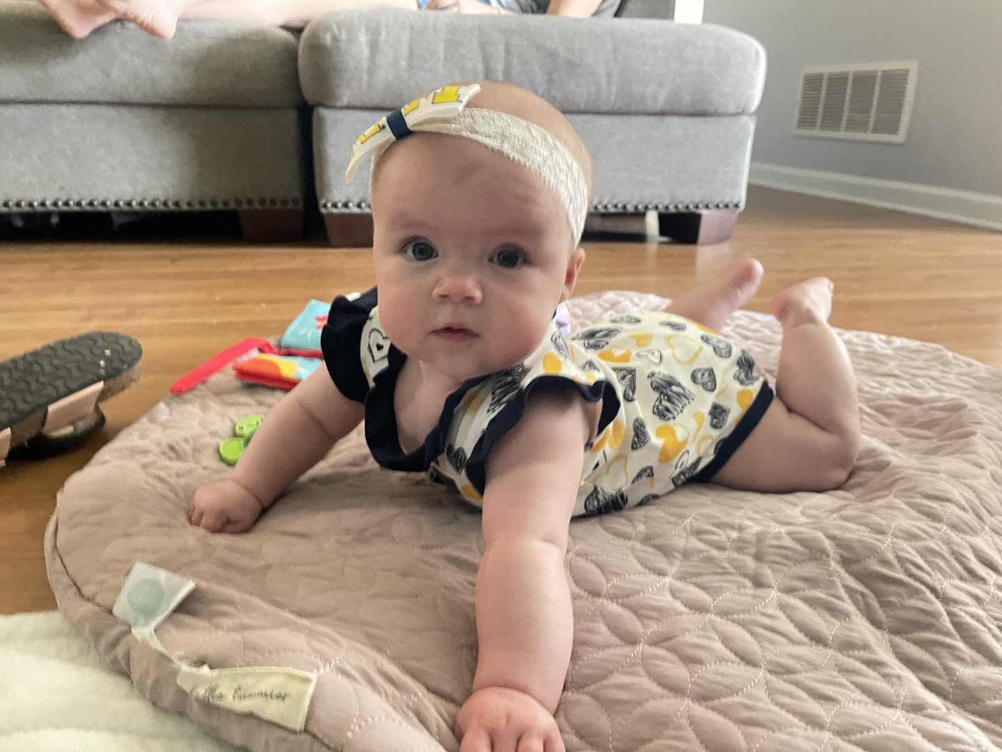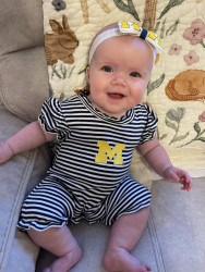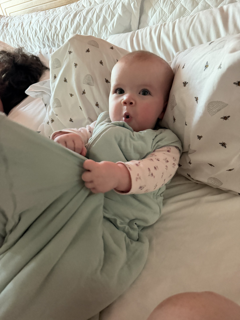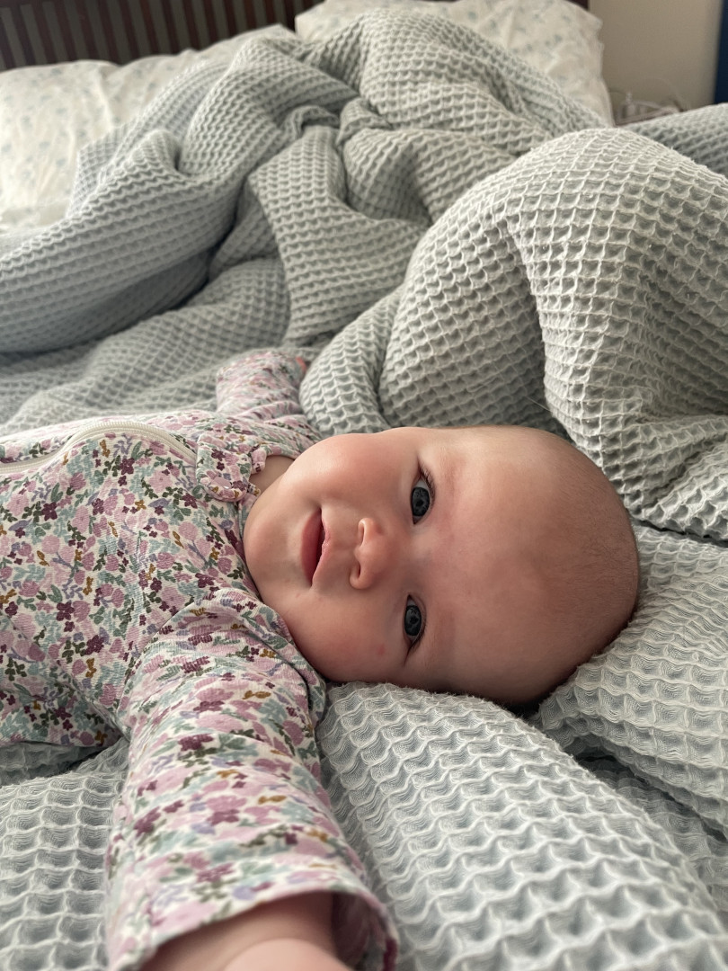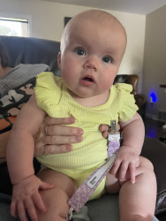 Our 3-month-old is full of wonder—curious about every sound and face around her. She’s sweetly affectionate, always ready to melt hearts with a snuggle or a wide-eyed gaze. Her little expressions say a thousand words, and lately, she’s found her voice—babbling away like she has stories to tell. A gentle, joyful soul with a spark of curiosity in every coo and glance.