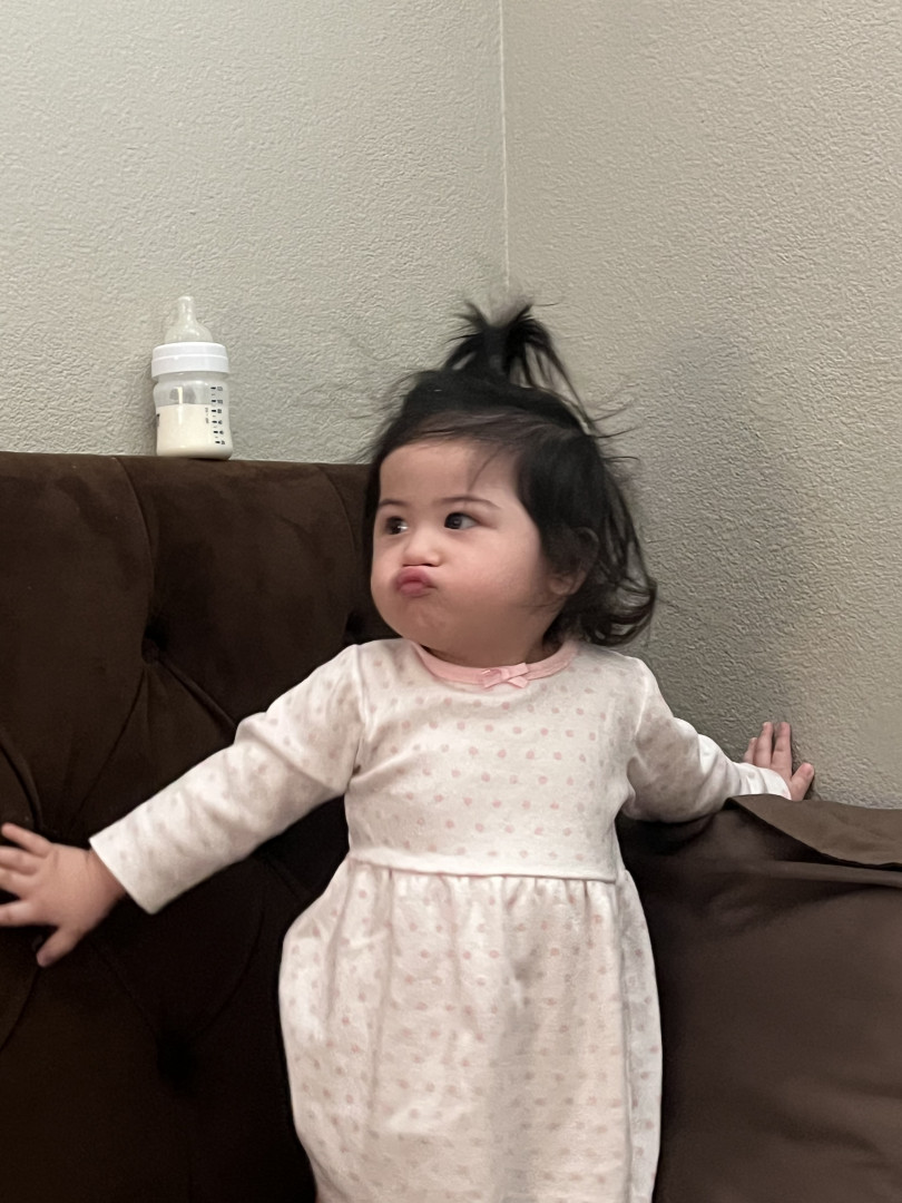 My baby should be the Baby of the Year because she is so adorable and funny! She smiles and talk to people all the time!