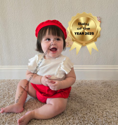 "Emma is pure sunshine—curious, playful, and kind. Her laughter is contagious, and her sweet spirit touches hearts everywhere. Even strangers can feel her light. She reminds us that love comes in the smallest packages, and her joy is meant to be shared. Emma is not just our baby—she’s a baby that makes the world brighter. 🌟 Vote for Emma and help her shine as Baby of the Year!