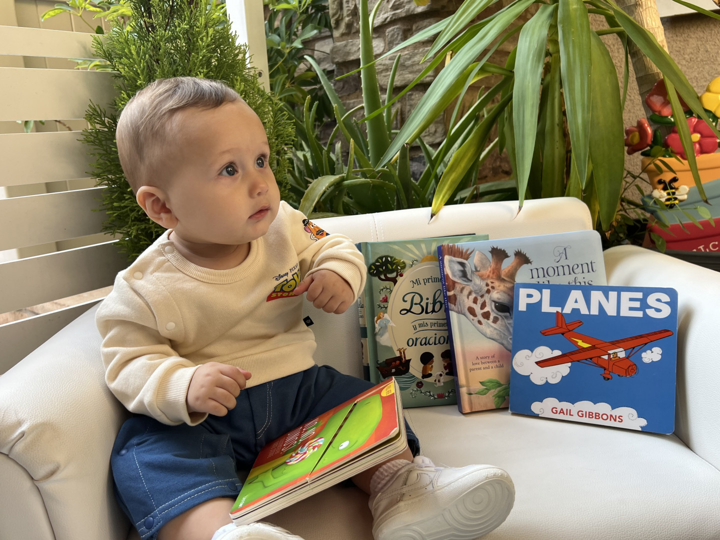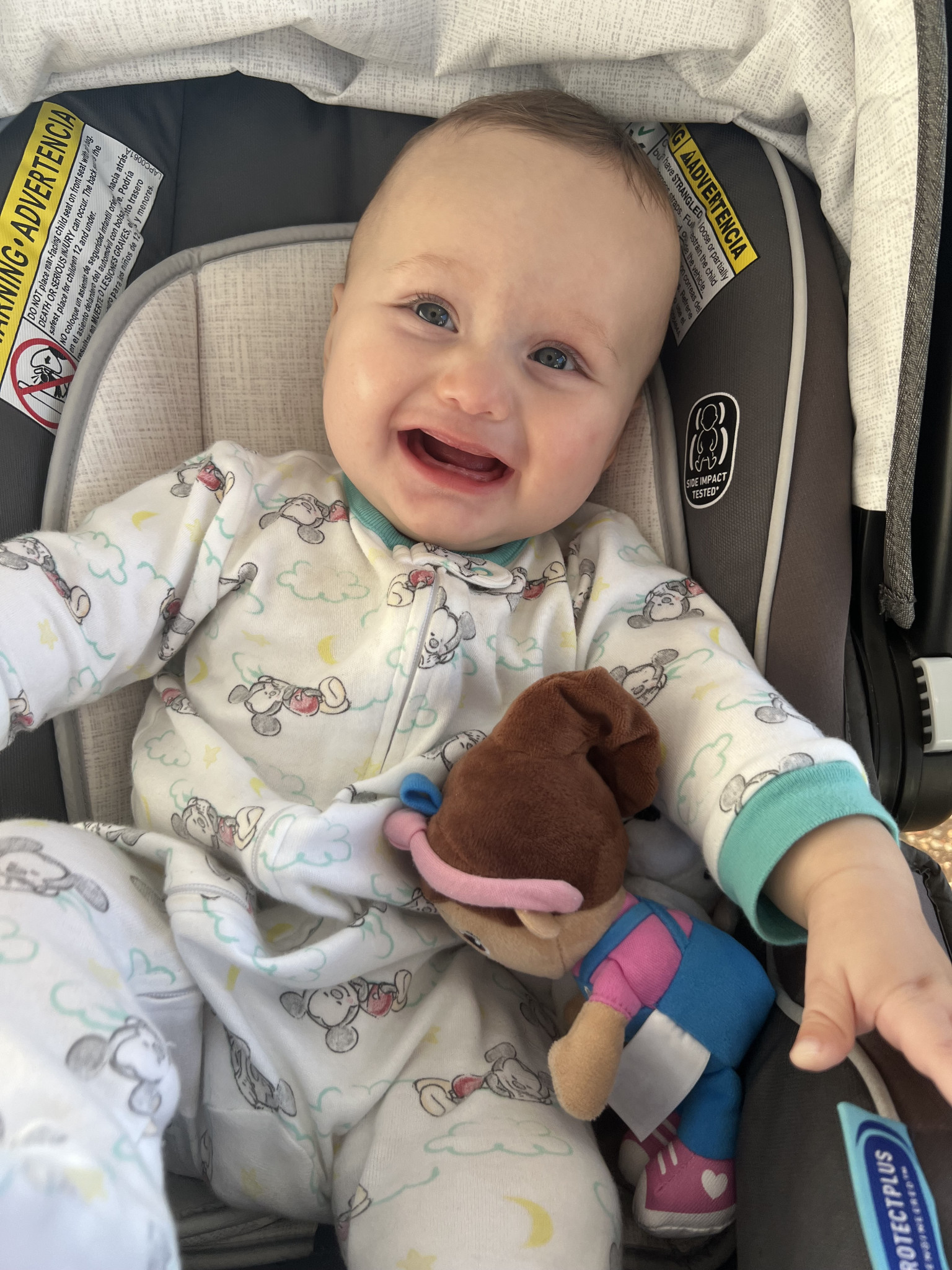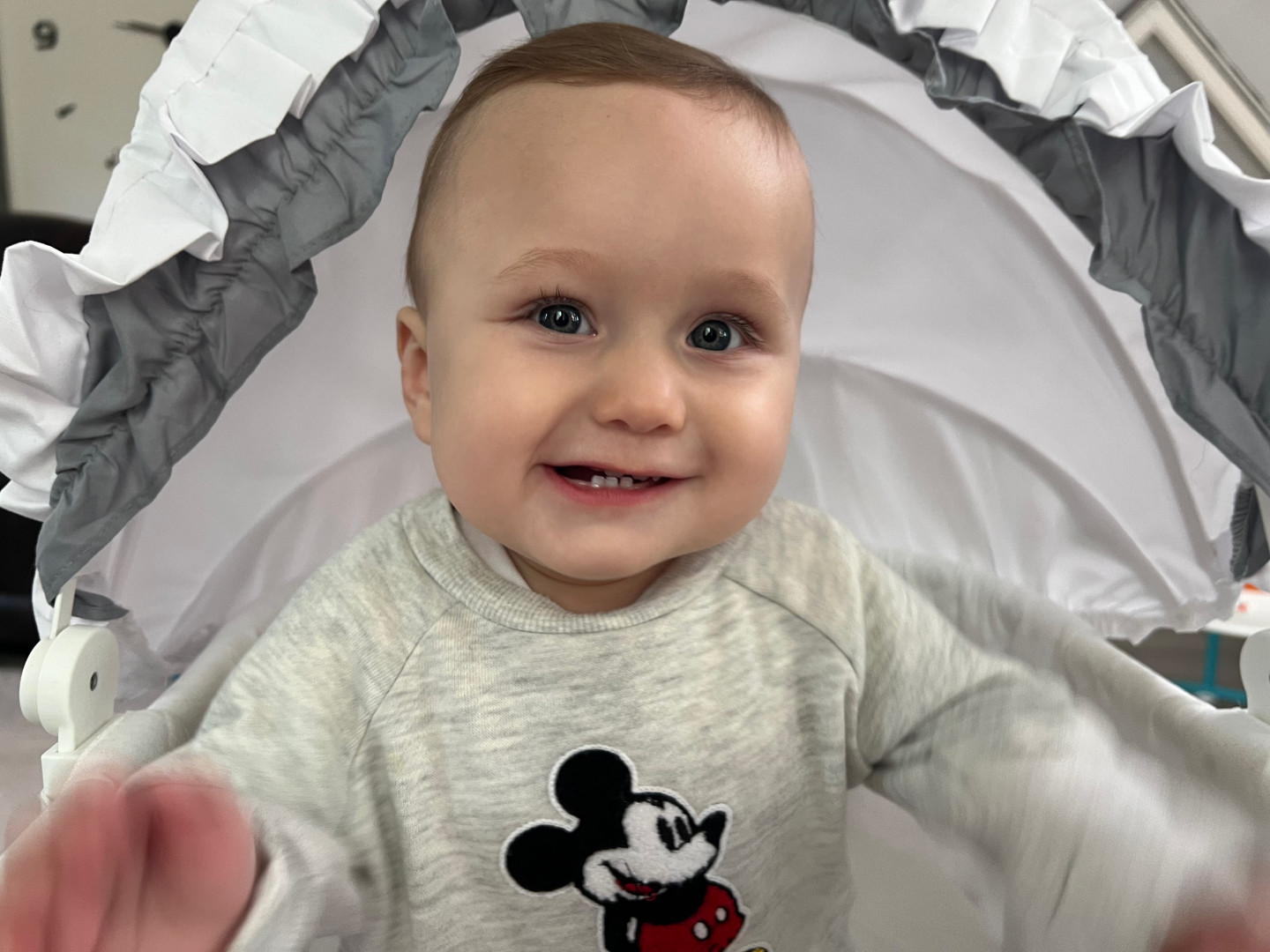 What are Ethan's favorite activities?He loves spending time with his sister. Just by looking at her he gets an instant smile. Ethan loves going out for walks, soaking in the sun and fresh air. He loves playing on his jumper toy and relaxing in his swing. He also loves Mickey Mouse Clubhouse.
