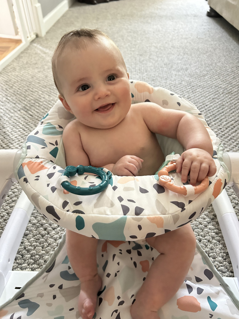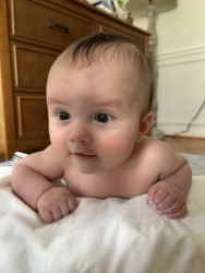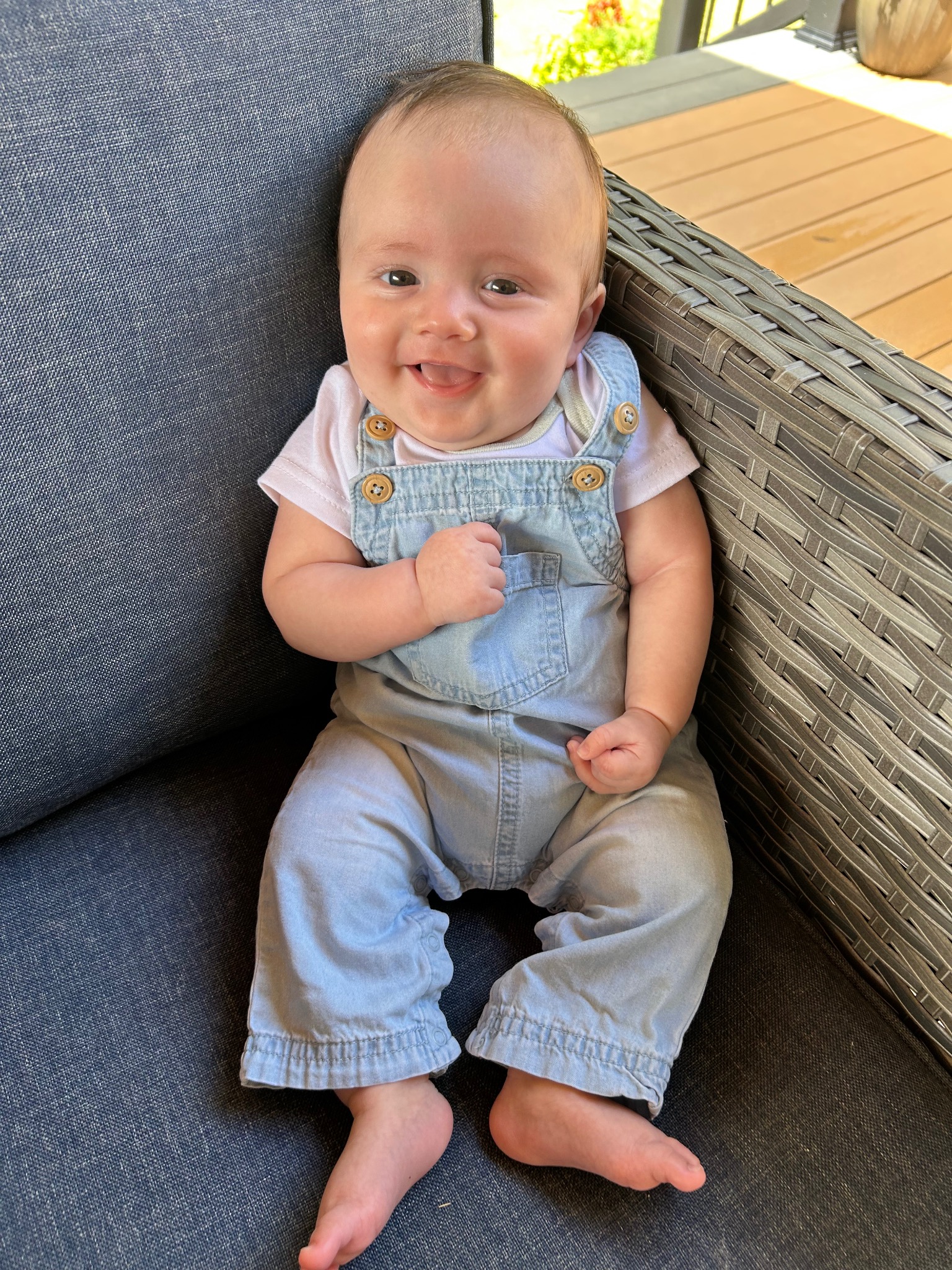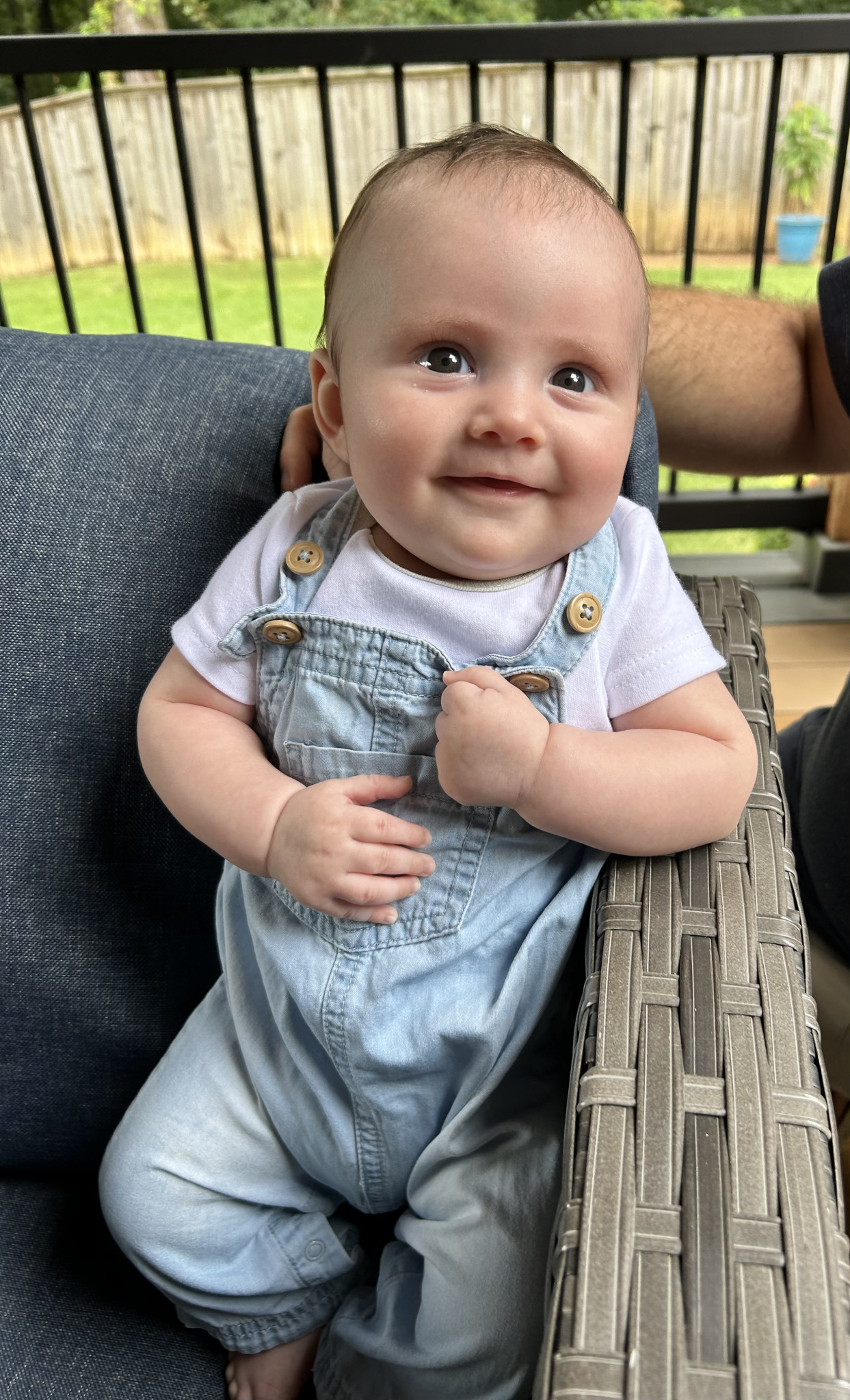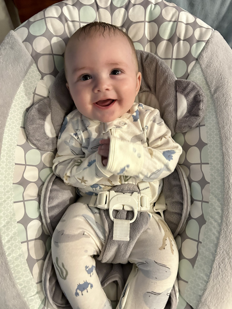 Ethan is the definition of sunshine in baby form—easygoing, content, and always ready to share a gummy grin. A full belly is his happy place, and he’ll reward you with the biggest, brightest smiles once he is fed. He has a special love for cozy naps, especially snuggled in mom’s arms or rocked gently in the car seat, where the hum of the road is like his favorite lullaby. Life is simple, and life is sweet, when you’re this peaceful little soul.