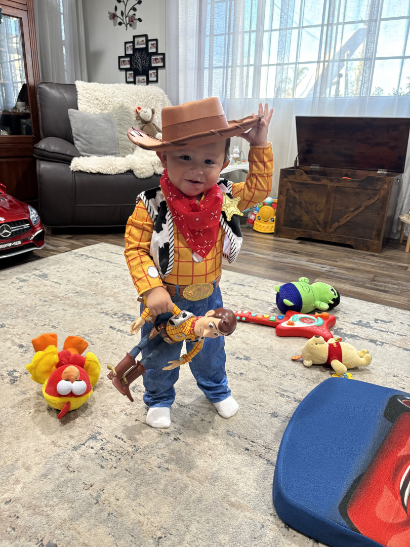 He’s very smart for almost 1, he is helpful ,very active , always smiling and giving hugs, loves to make everyone smile or laugh, and boy does he know how to get your attention , and he flirts with the ladies . He also loves playing with the puppies and running circles around grandmas house , never a dull moment with baby EJ
