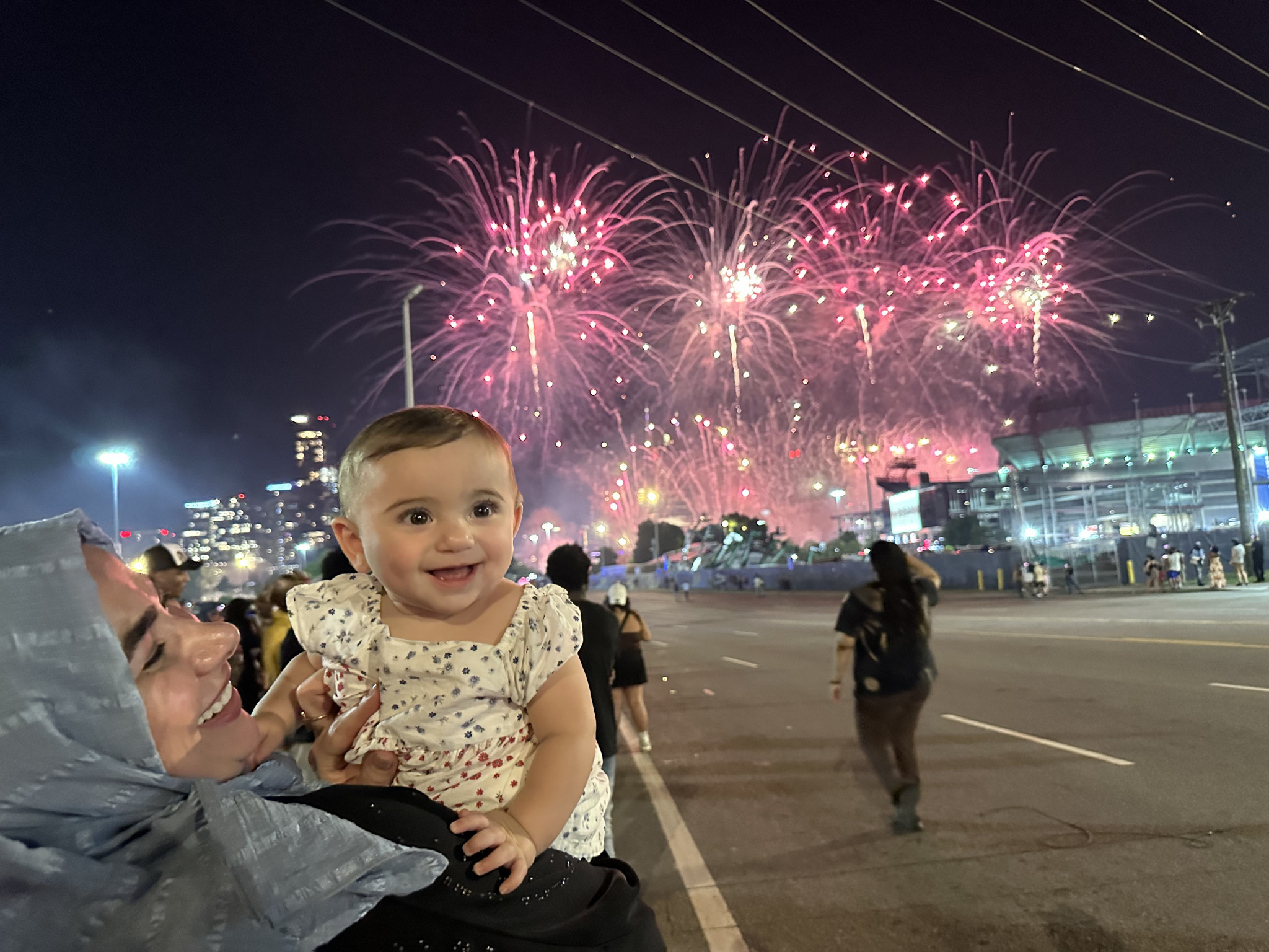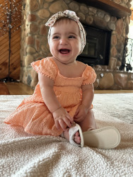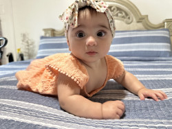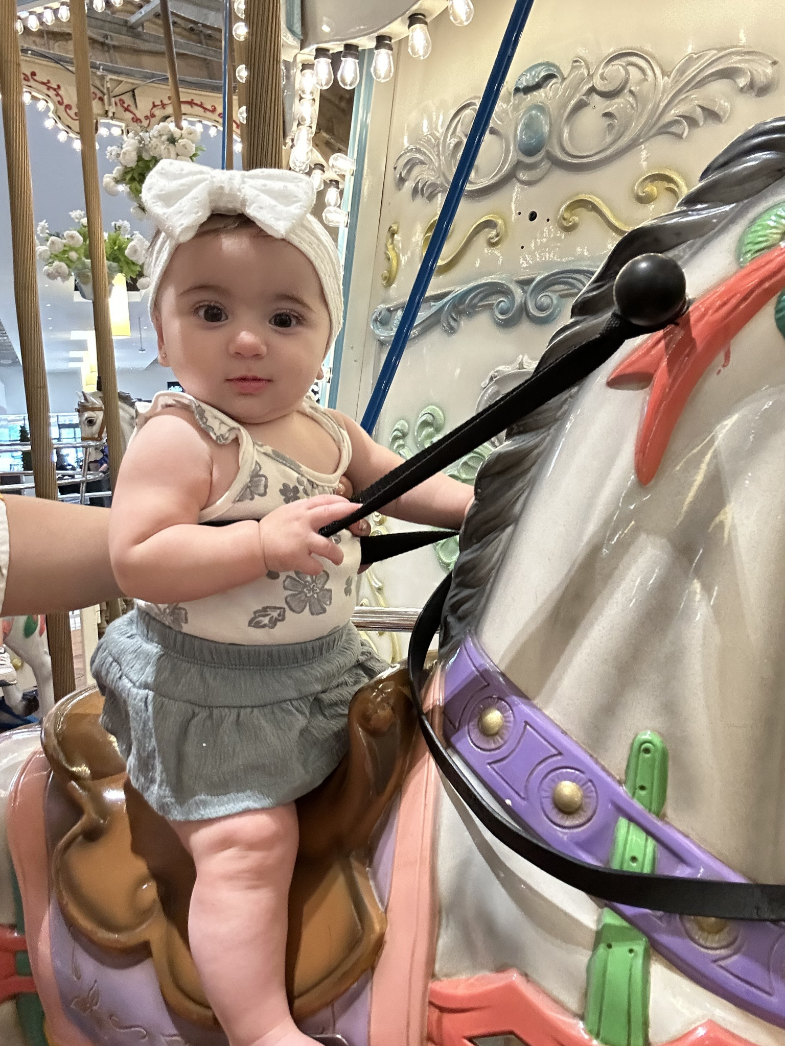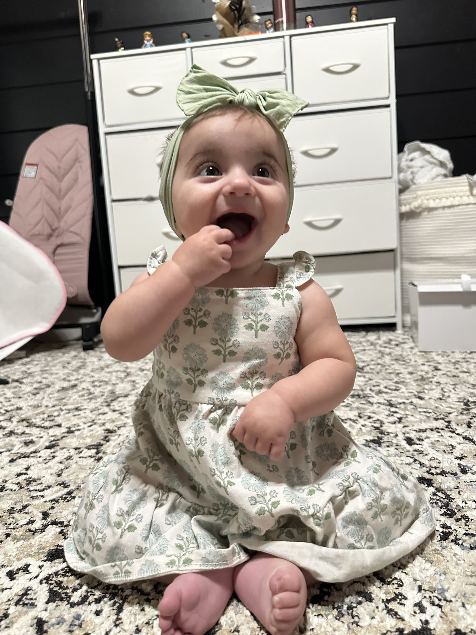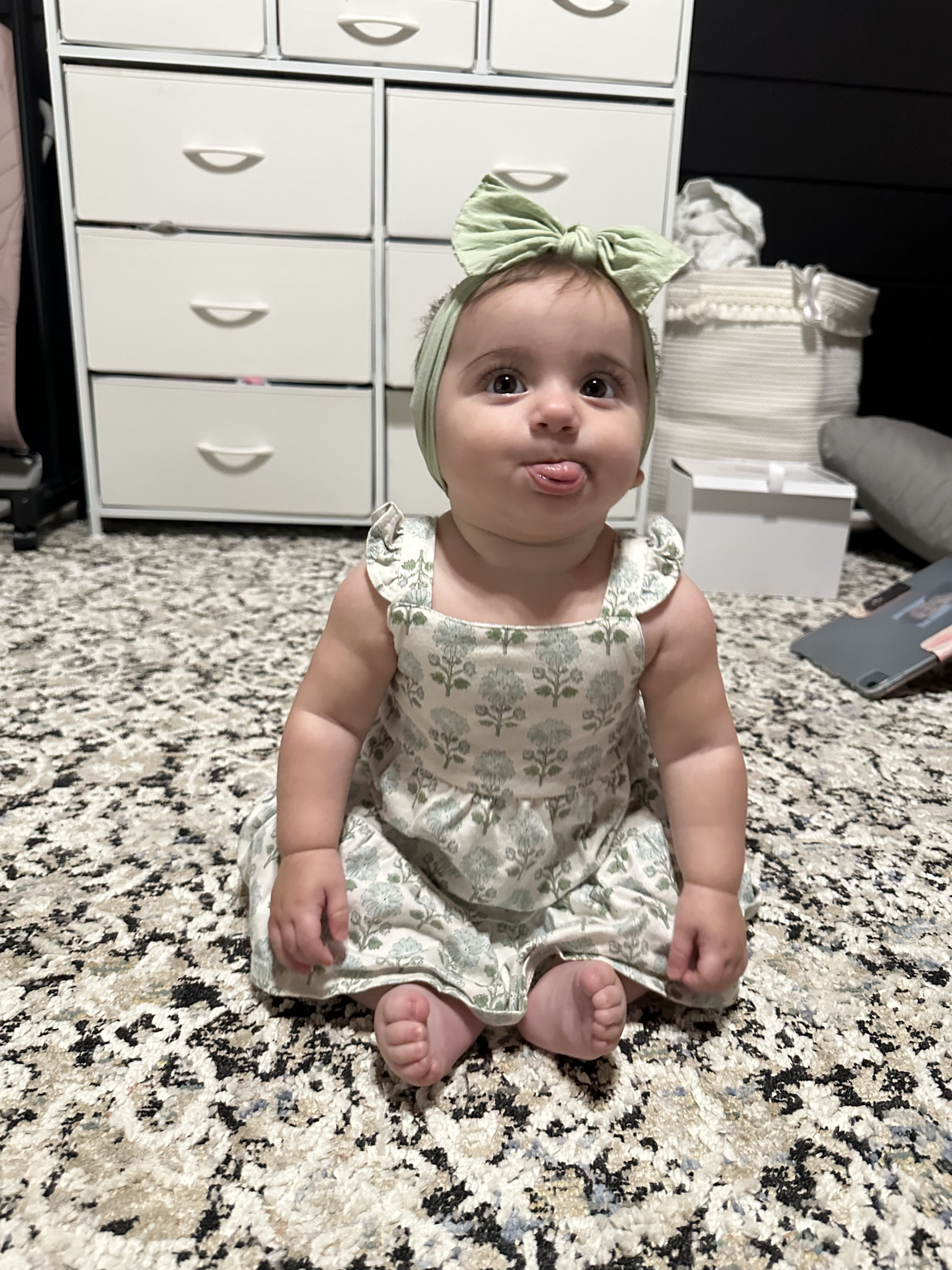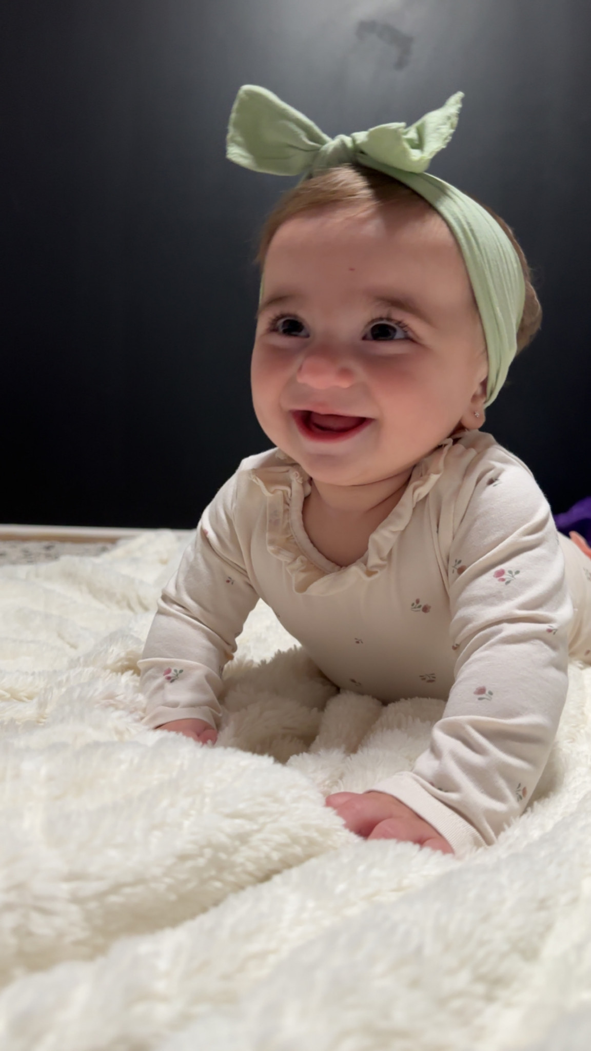 She’s bubbly and loves to “dance”—jumping up and down—, she sometimes plays bashful which is the cutest thing ever, I may be biased 😁.