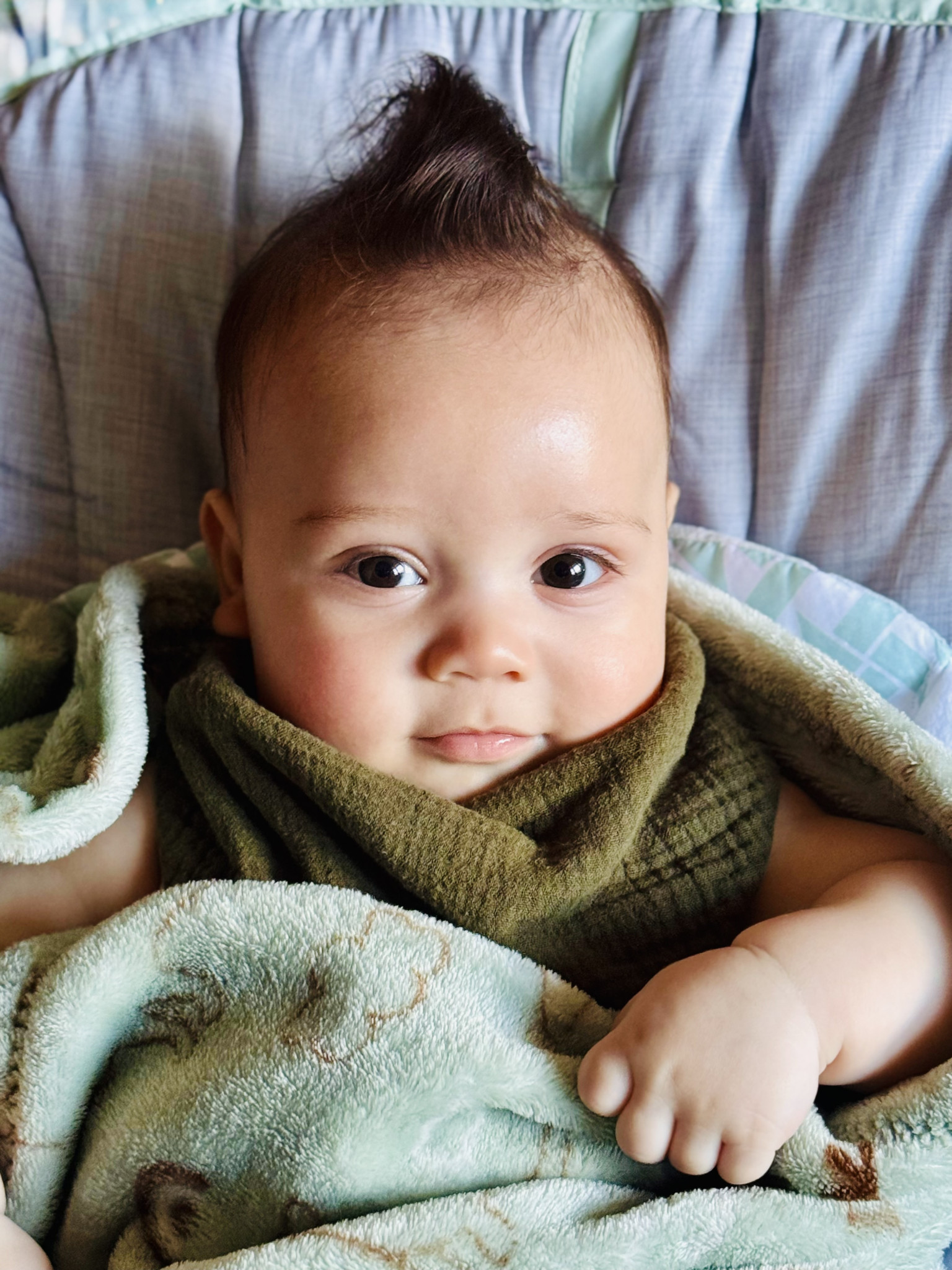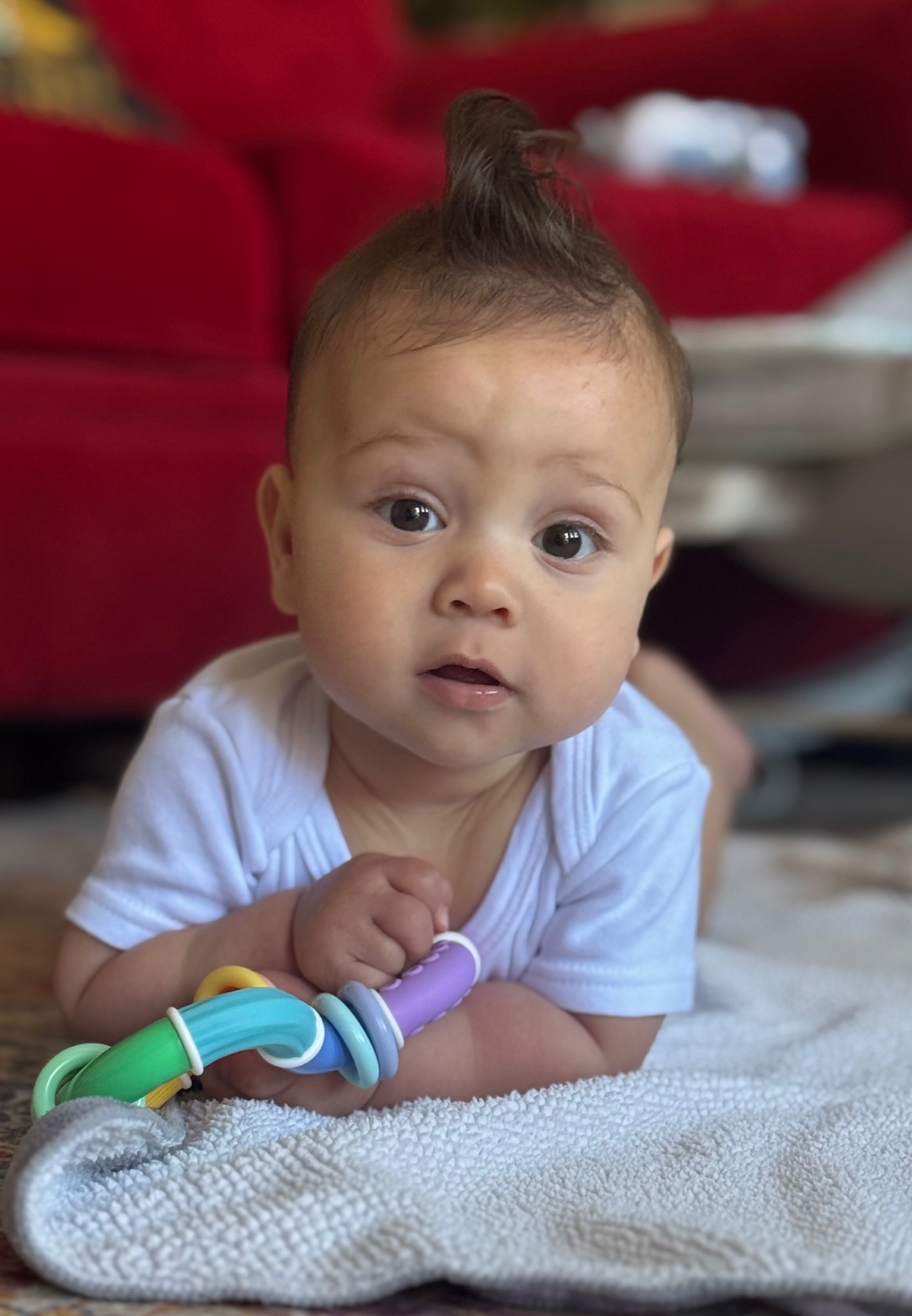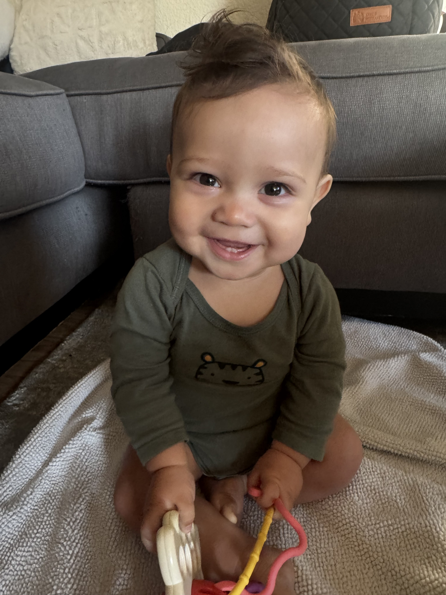 Everett is such a bright, smiley little soul. He often babbles, kicking his legs with excitement when someone is engaging with him. He’s incredibly observant and loves watching everything around him. He never wants to miss a moment, if something’s going on, he absolutely needs to be part of it. His curiosity and joy light up every room!