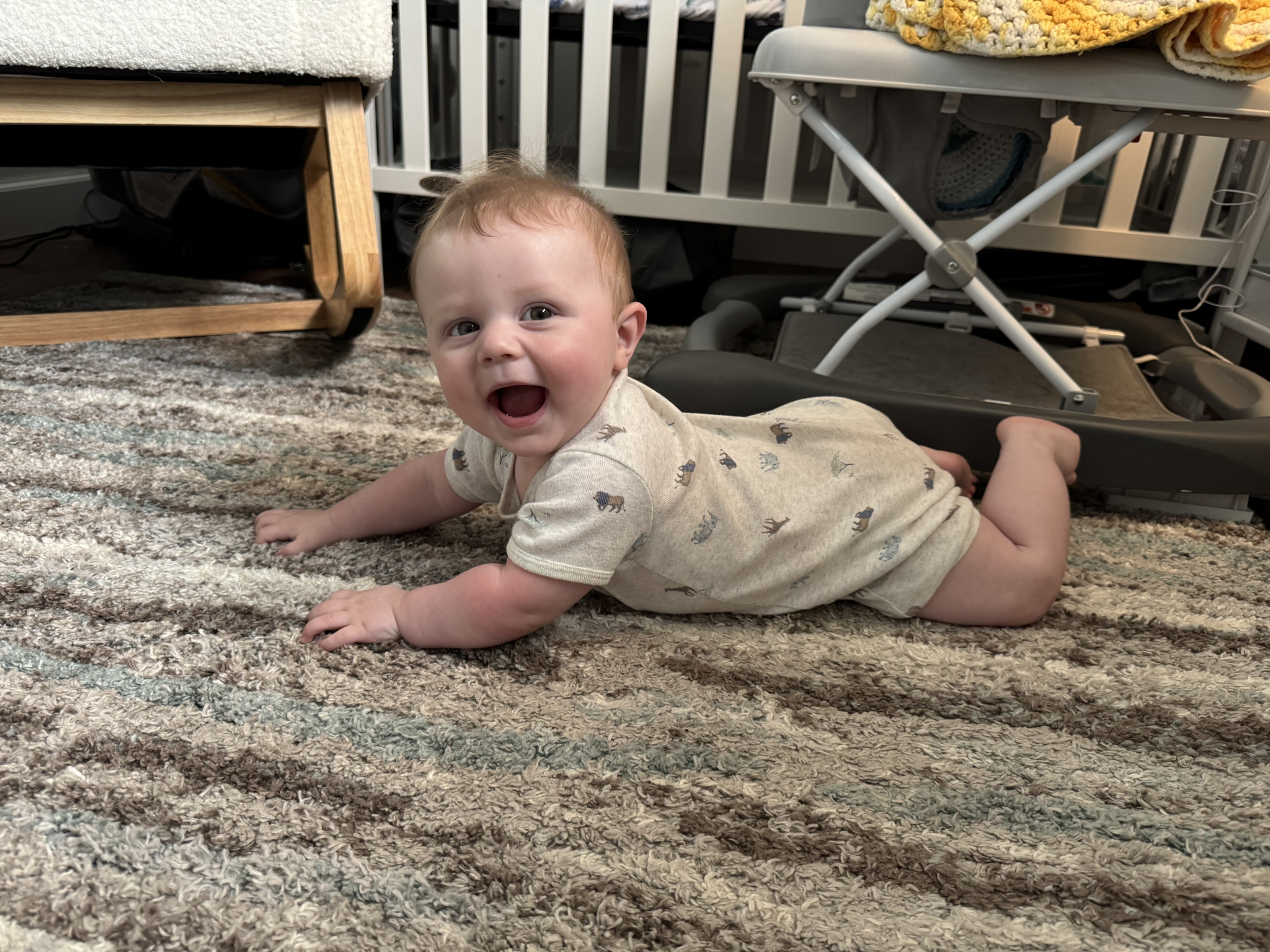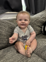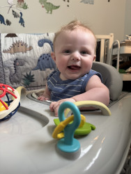 Everett has the best little personality, he is almost always happy and gives people a big smile when you talk to him. He loves music and does a little dance when he hears a song he likes! He recently learned how to say mama and dada!