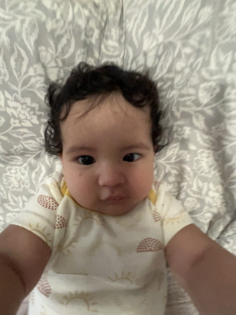 Ezequiel is a loving, caring, sweet little baby who smiles at everyone but not without being told his a cutie pie first. He is serious at times but always ends in a smile. He is a very crafty baby and an escape artist despite the fact he can’t yet crawl or walk he sure knows how to get out of a swaddle.
