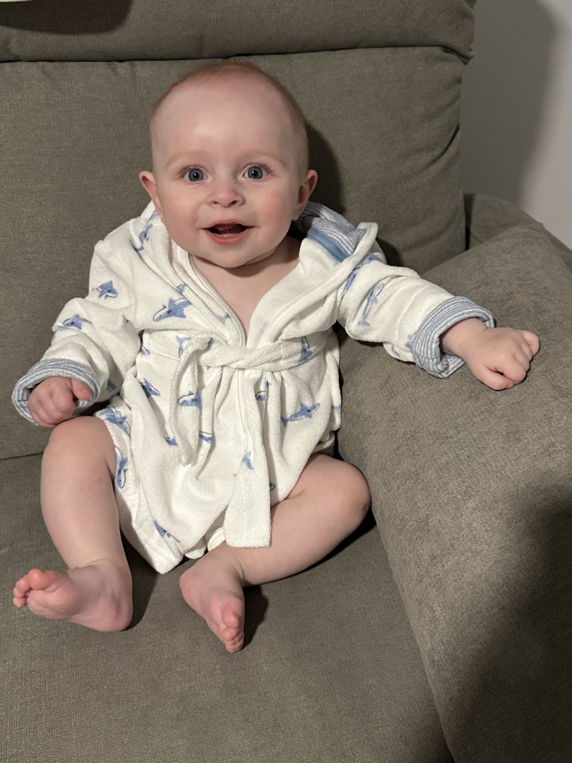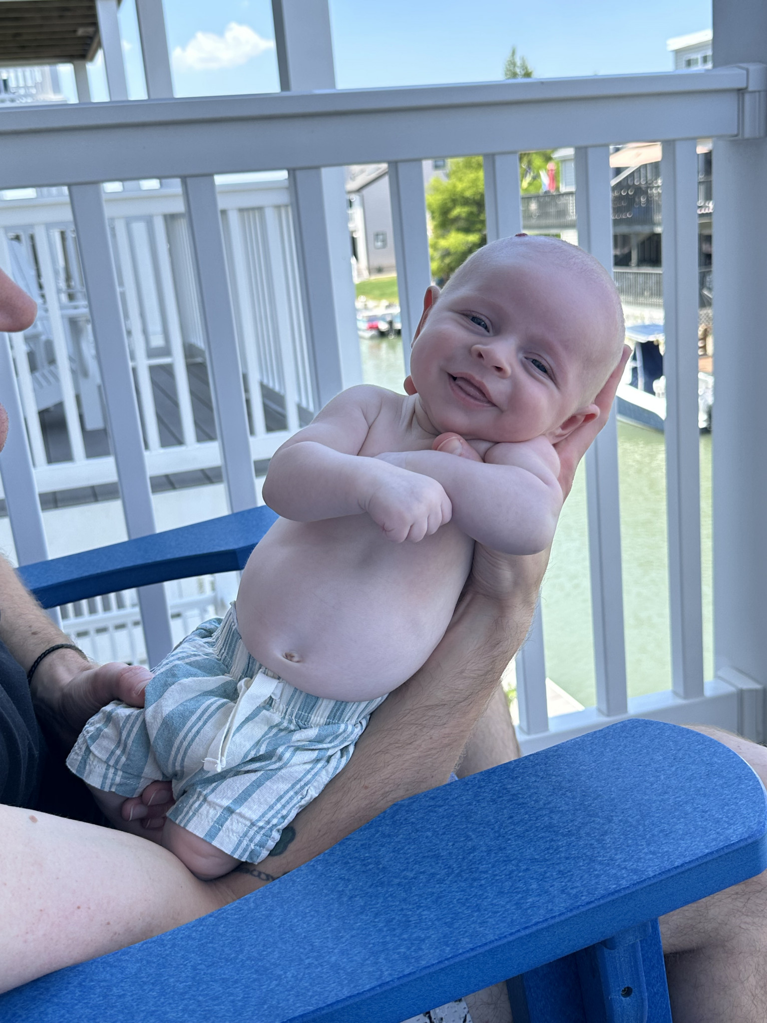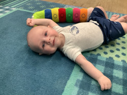 Finley is so happy and smiley! He is an absolute joy! He loves to laugh and play.